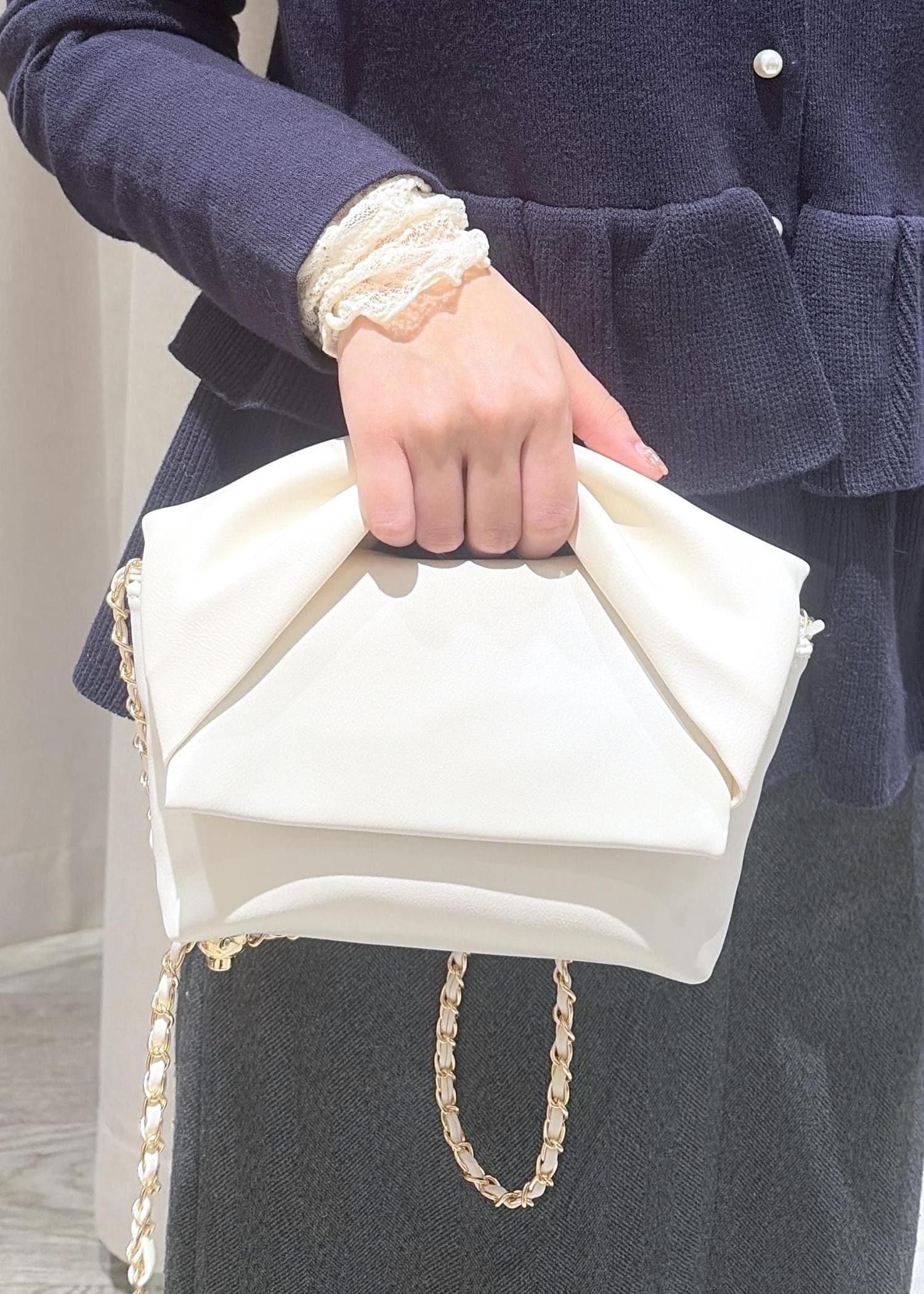 VISリボンハンドルチェーンショルダーバッグ/2WAYキナリ / F¥4,743レビュー長さ調節可能なチェーン付きです!2wayで使用できます