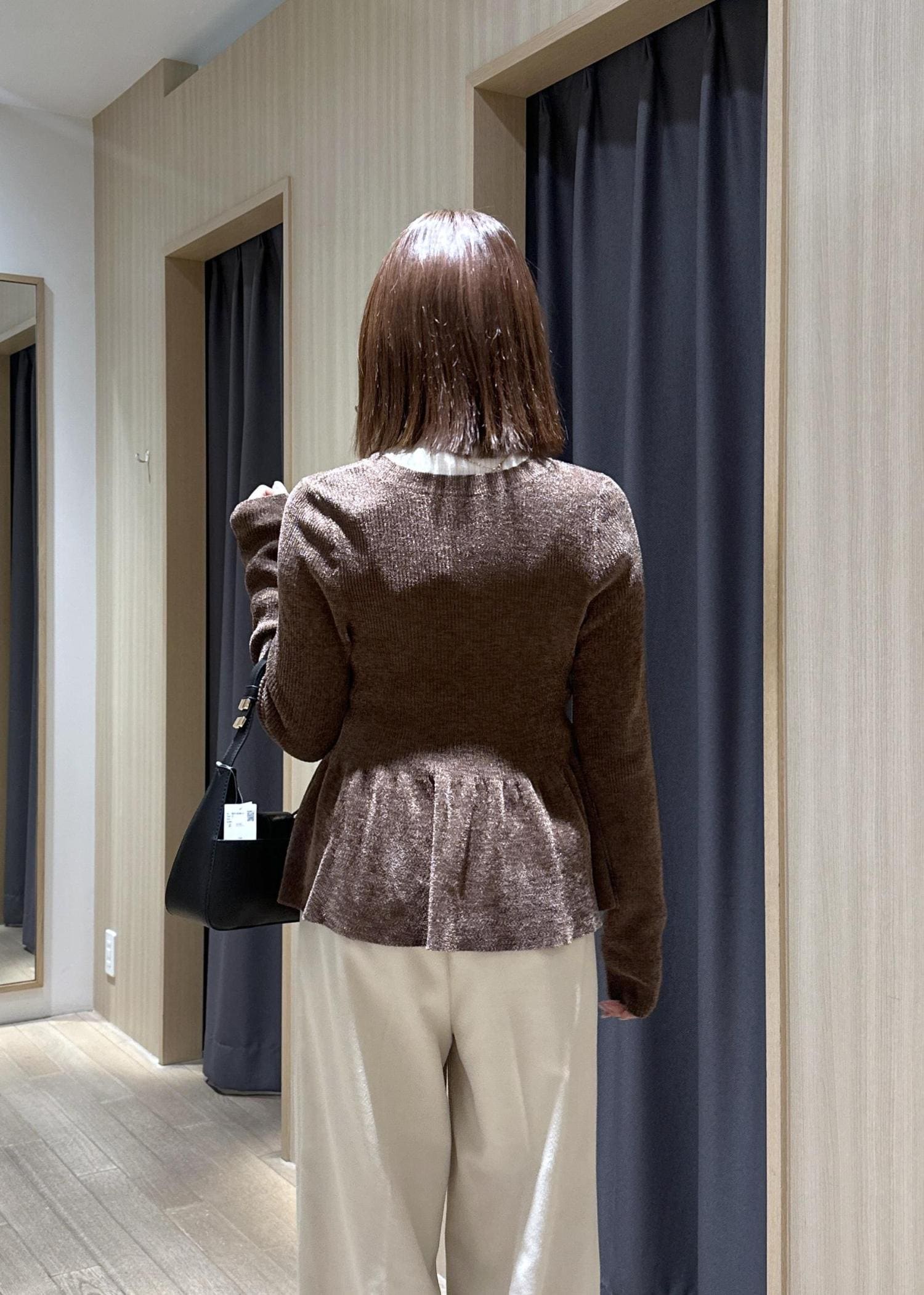 VISペプラム切替モールニットカーディガン/イージーケアダークブラウン / F¥6,589レビュー大人気のペプラムカーディガン。
