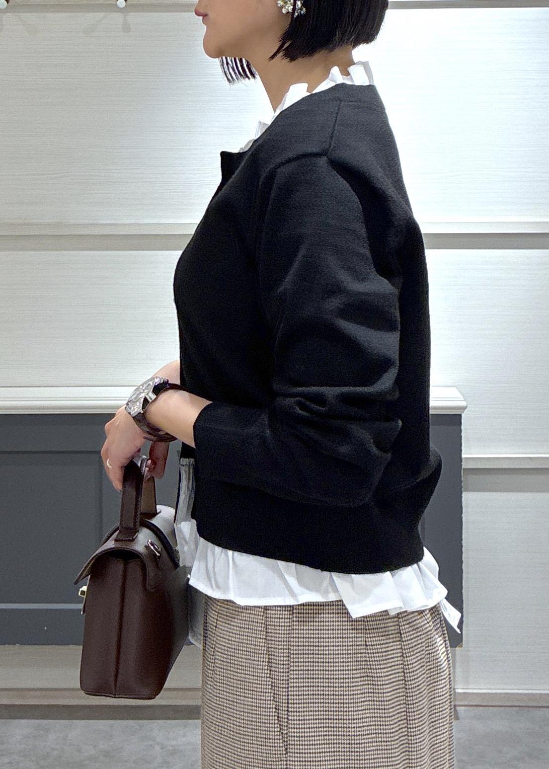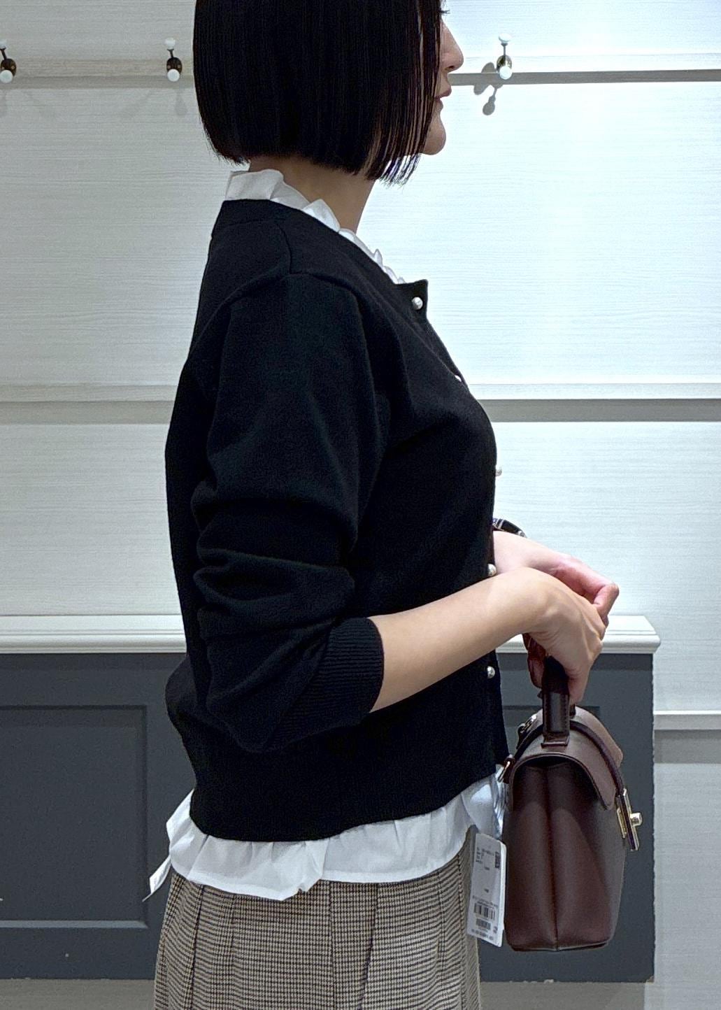 VIS【美得】フリル襟ドッキングニットカーディガントップスブラック / F¥5,929レビュー骨格ストレートで肩周りが気になる体型ですがぴったりし過ぎないので体型を拾わず着用出来ました♪