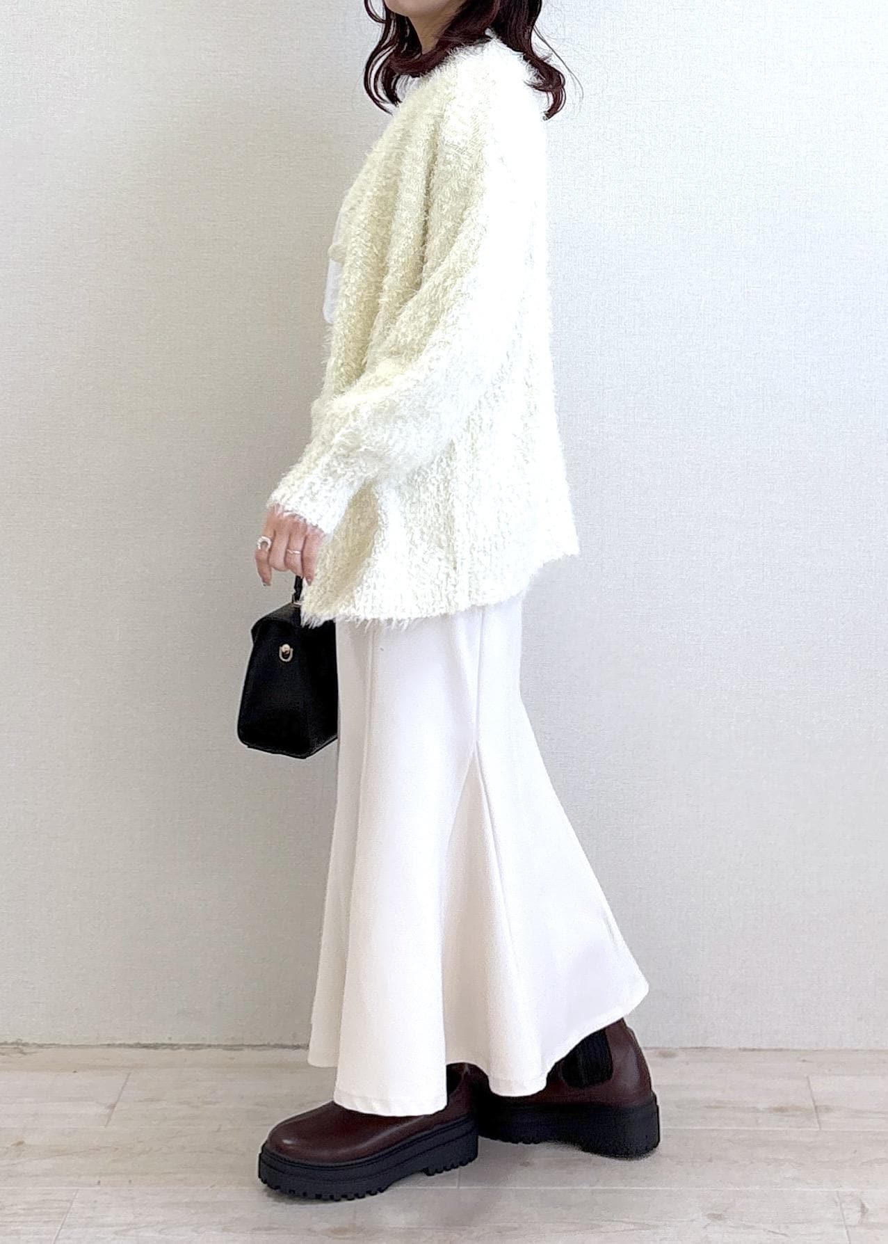 袖も長めでボリュームがあるのでフェミニンコーデにぴったりです! -