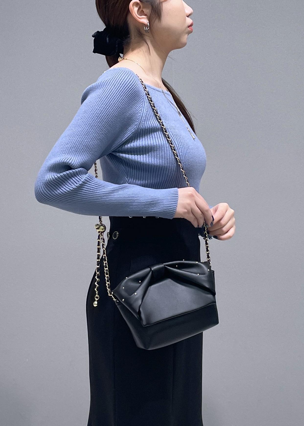 リボンハンドルデザインが、シンプルながらも可愛く華やかな雰囲気を出してくれます。ショルダーは長さ調節可能です◎ -