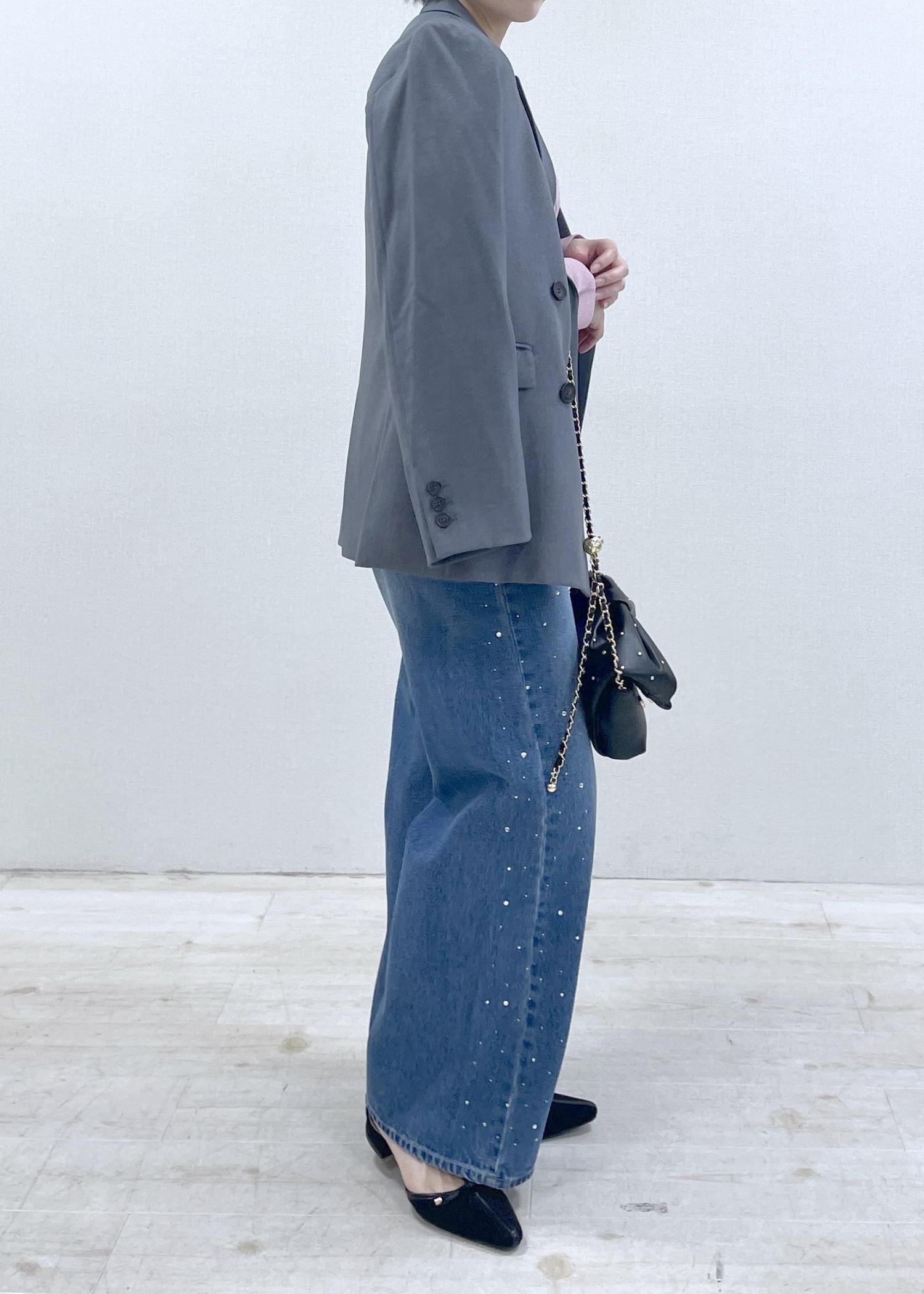 ほどよく硬さのあるデニムですが、通年使えるような生地の厚みで、着やすいです。
