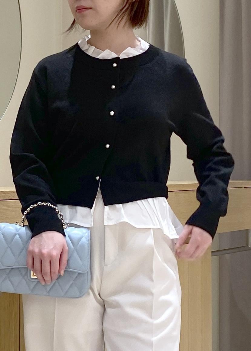 2BUY10%OFFVIS【美得】フリル襟ドッキングニットカーディガントップスブラック / F¥5,929レビューフリルシャツとのドッキングニットは