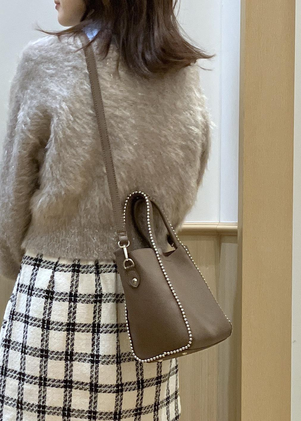 小さめサイズですがマチありなのでポーチなど嵩張るお荷物も入れやすいです。 -