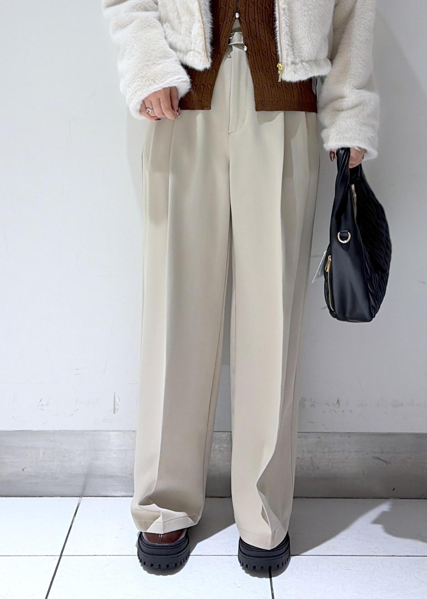 2BUY10%OFFVISベルトディテールタックワイドパンツ/イージーケアベージュ / M¥5,271レビュー160cmでMサイズを着用しました。