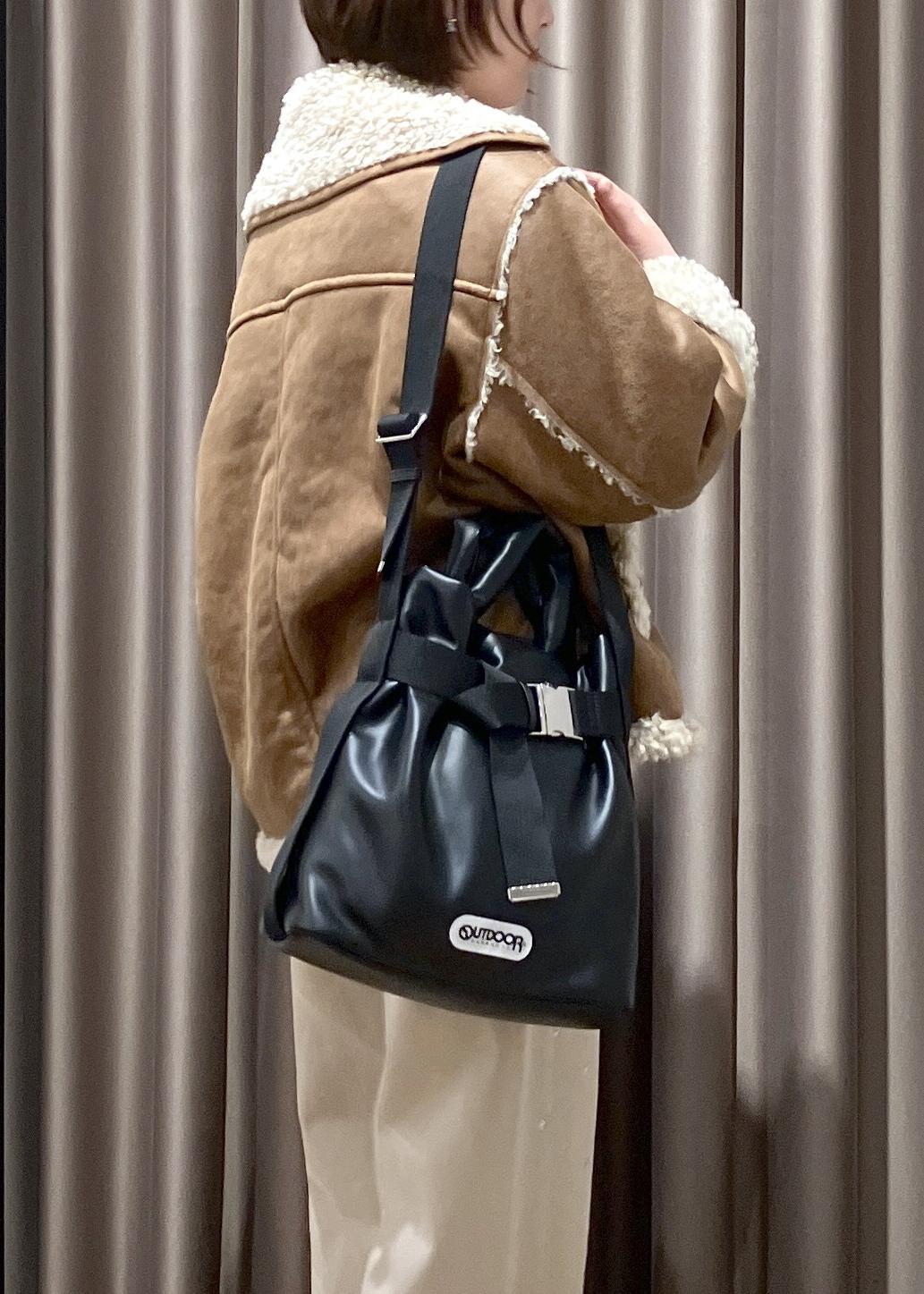 2BUY10%OFFVIS【OUTDOOR PRODUCTS】VIS別注2WAYベルト付きパデッドトートバッグブラック / F¥8,580レビューどれもVISでしか買えない限定カラー!中でもALLブラック×合皮はアウトドアプロダクツでも初のデザイン!ややふくらみのあるフォルムに、微光沢の素材を組み合わせた上品カジュアルなデザインバッグ!フロントにあしらった配色テープとシルバーバックルがアクセントになり、シンプルなスタイリングにも映える仕上がりです!ベルトをキュッと締めると、口元がくしゅっと寄って丸みのあるシルエットに!ショルダーと手持ちの2WAY仕様で、気分やコーデに合わせて持ち替えられる使い勝手の良さも魅力です!