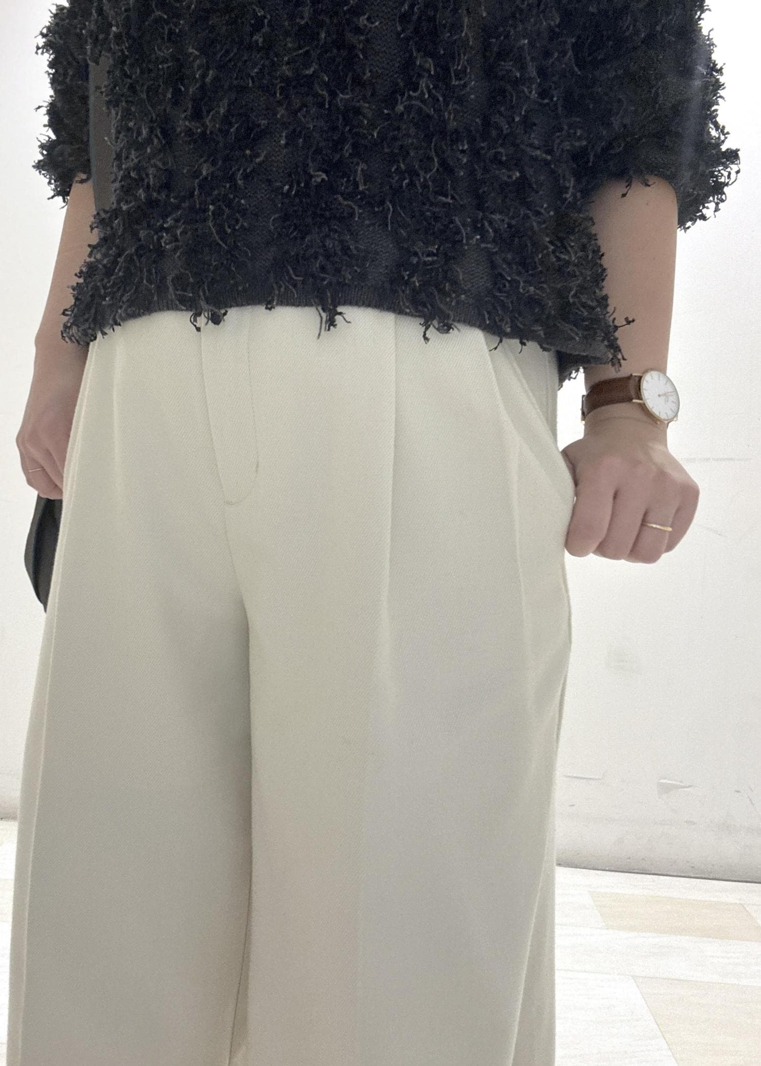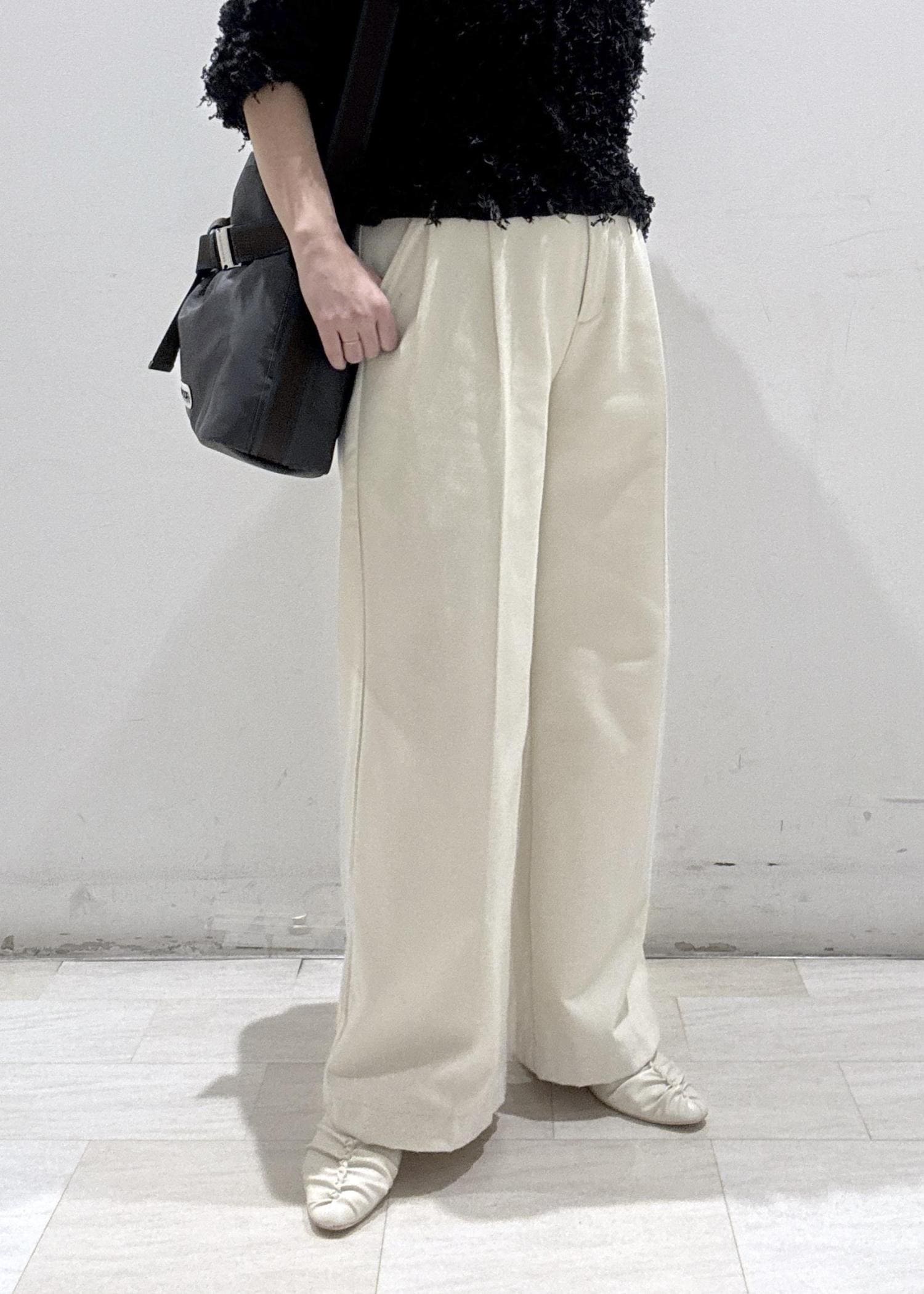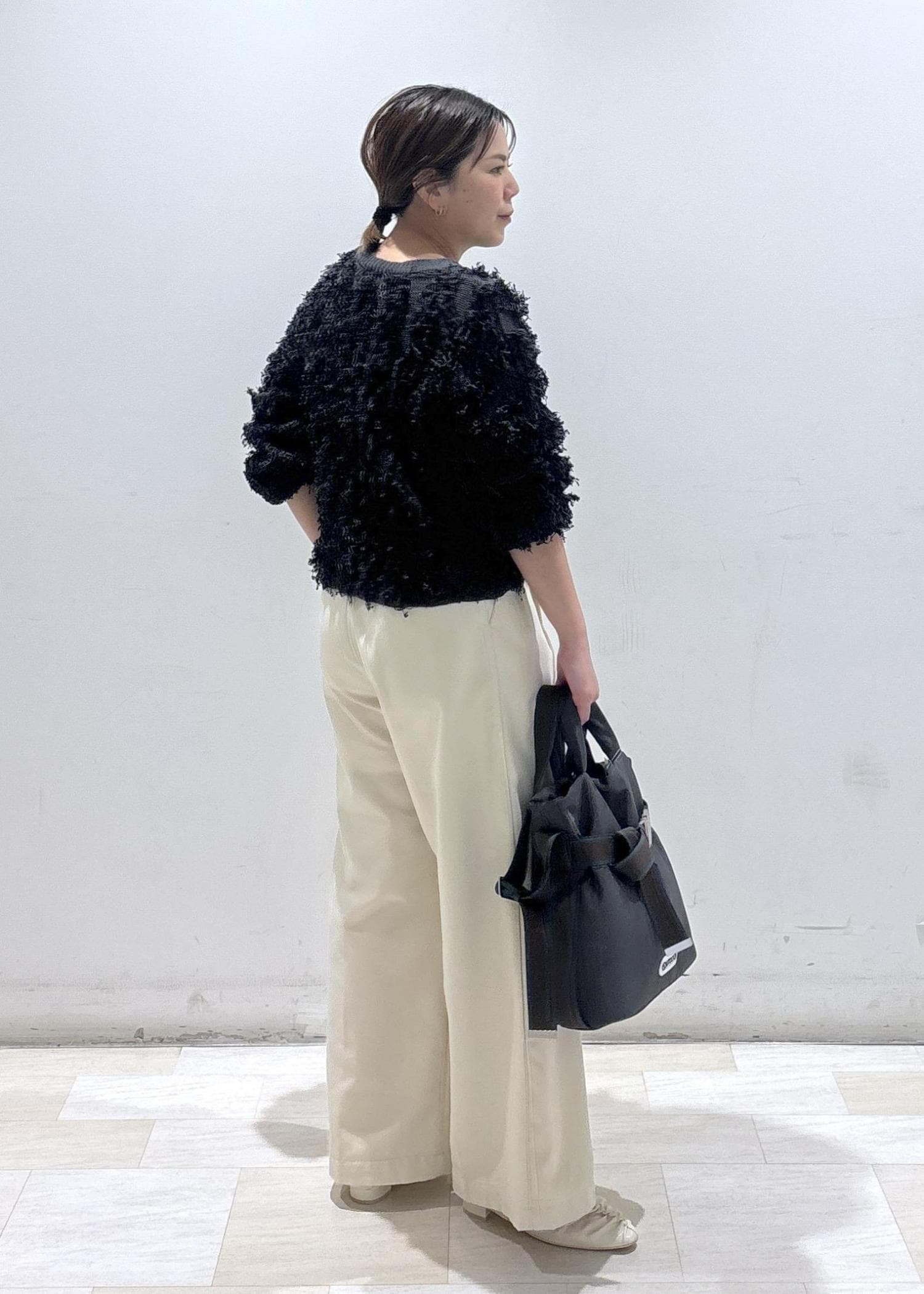 少し短め丈なのでワイドパンツですっきり合わせるのがオススメです。
