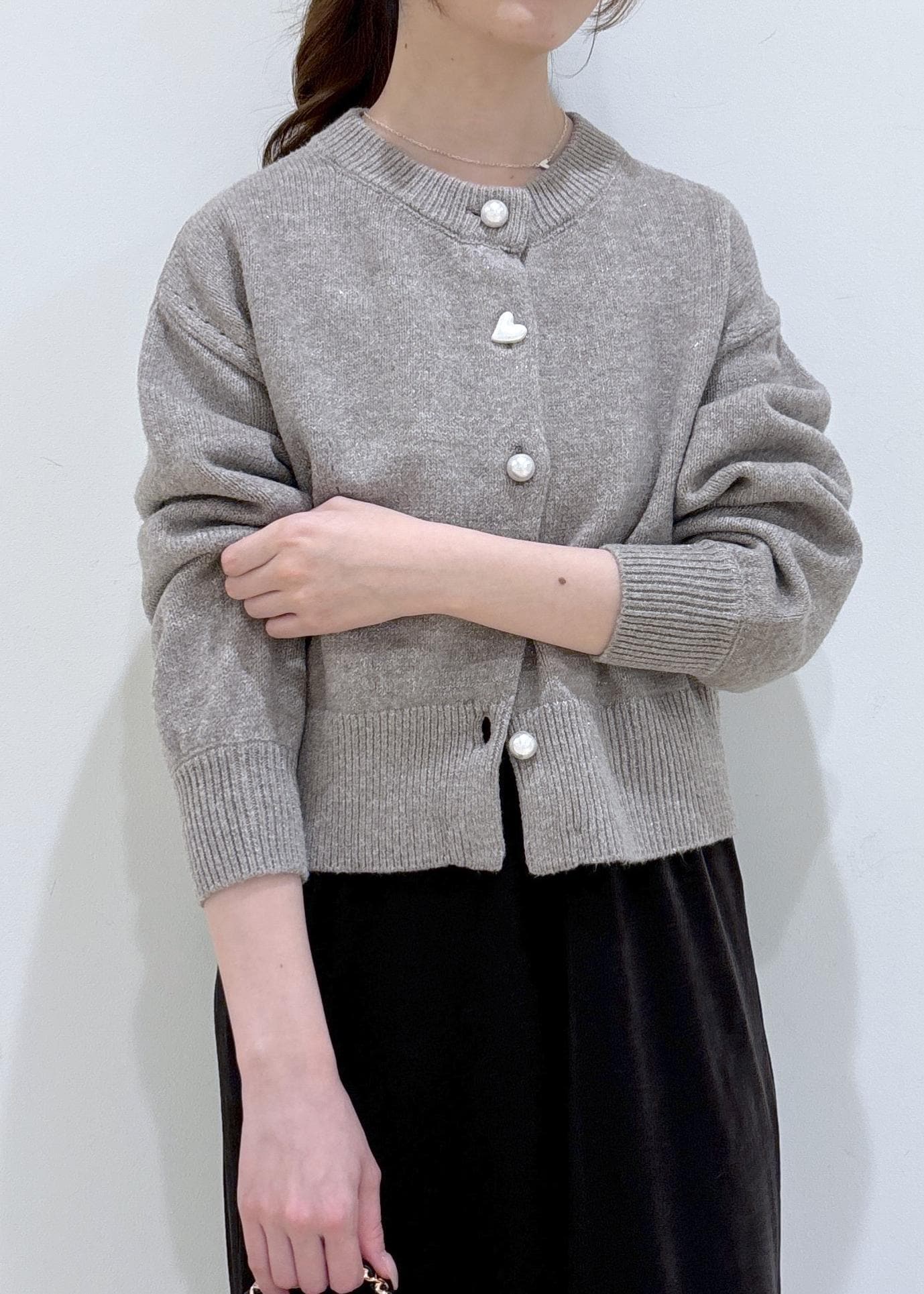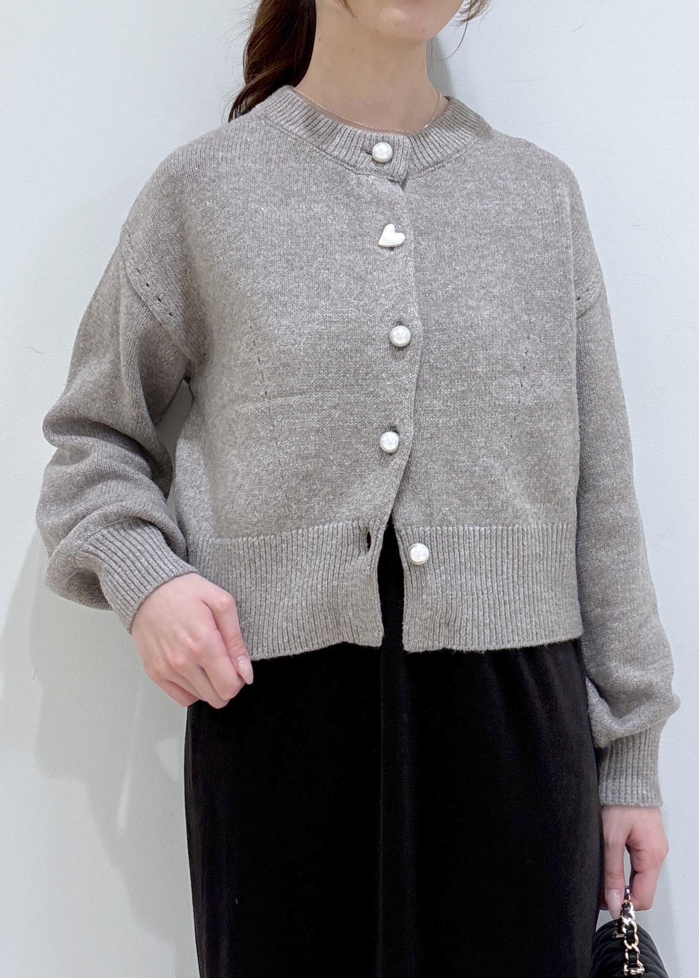 2BUY10%OFFVISハートアソートパール釦ラメミックスカーディガン/イージーケア・一部WEB限定カラーブラウン / F¥4,391レビューパールボタンが可愛く、第二ボタンがハートの形がポイントです!