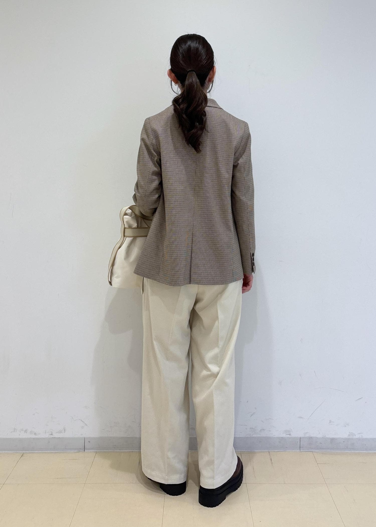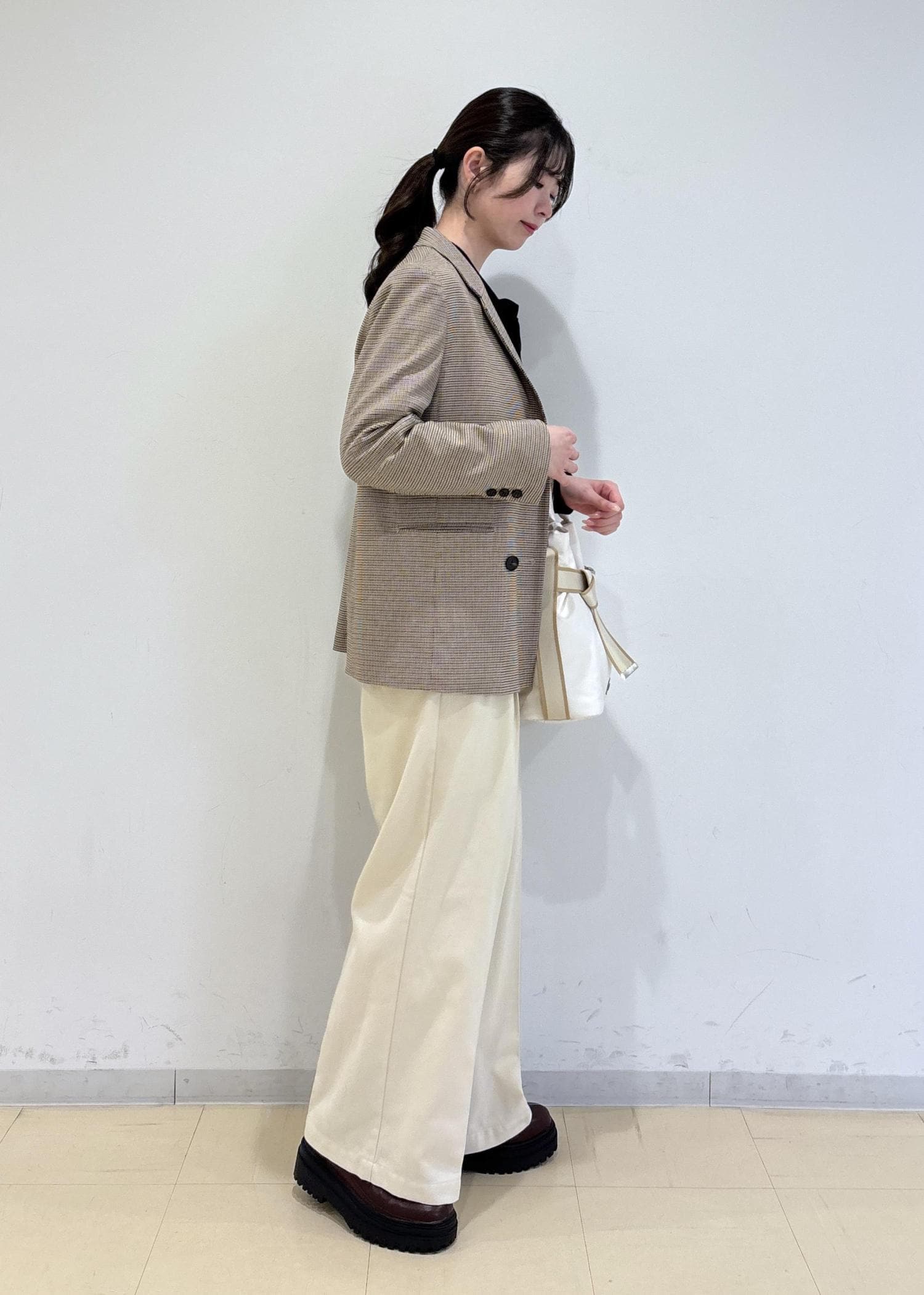 袖にボリュームのあるトップスやニットだとゴワつきやすいので、リブニットなど薄めのトップスを合わせるのがオススメです。 -