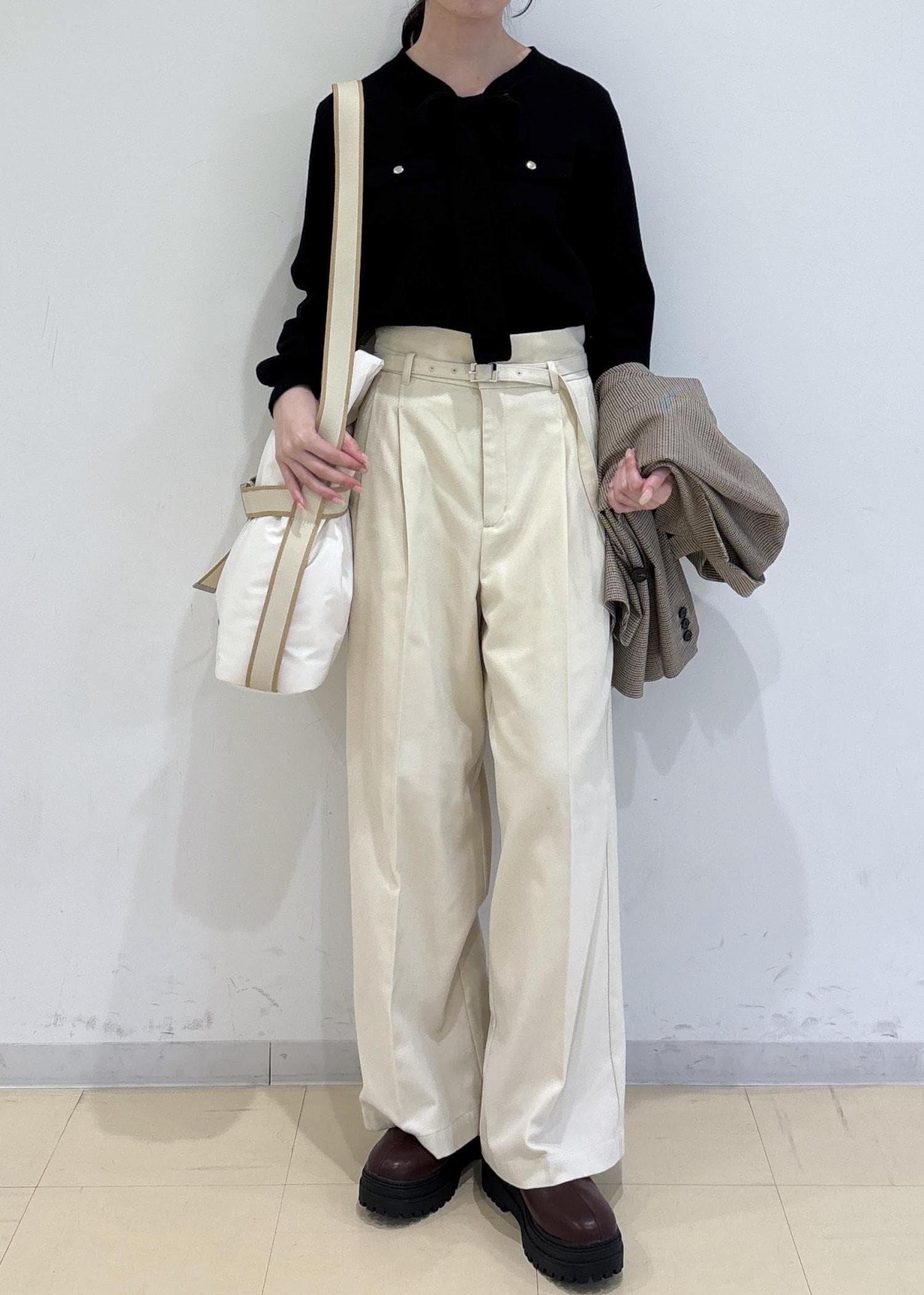 2BUY10%OFFVIS起毛ウールライク版ベルトディテールタックワイドパンツキナリ / M¥5,271レビュー163cmでMサイズ着用。ウエストも丈もちょうど良かったです。