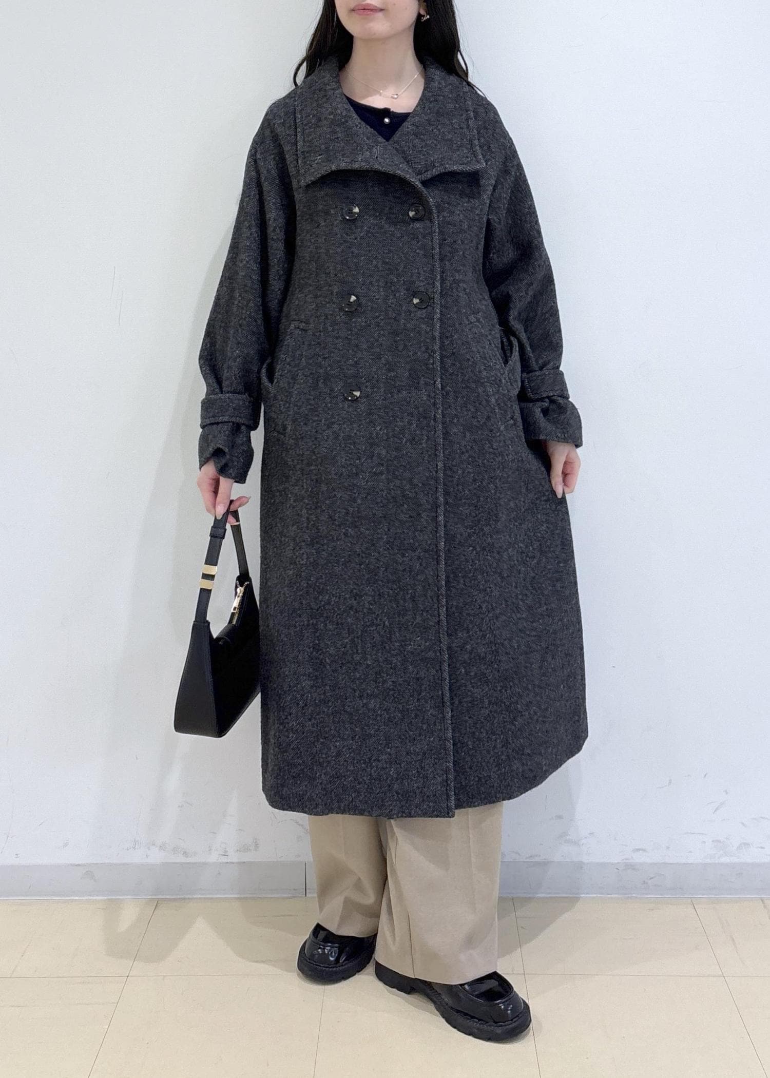 ウール混で暖かく、ロングコートなのに羽織心地軽くてストレスフリーで着用できます!
