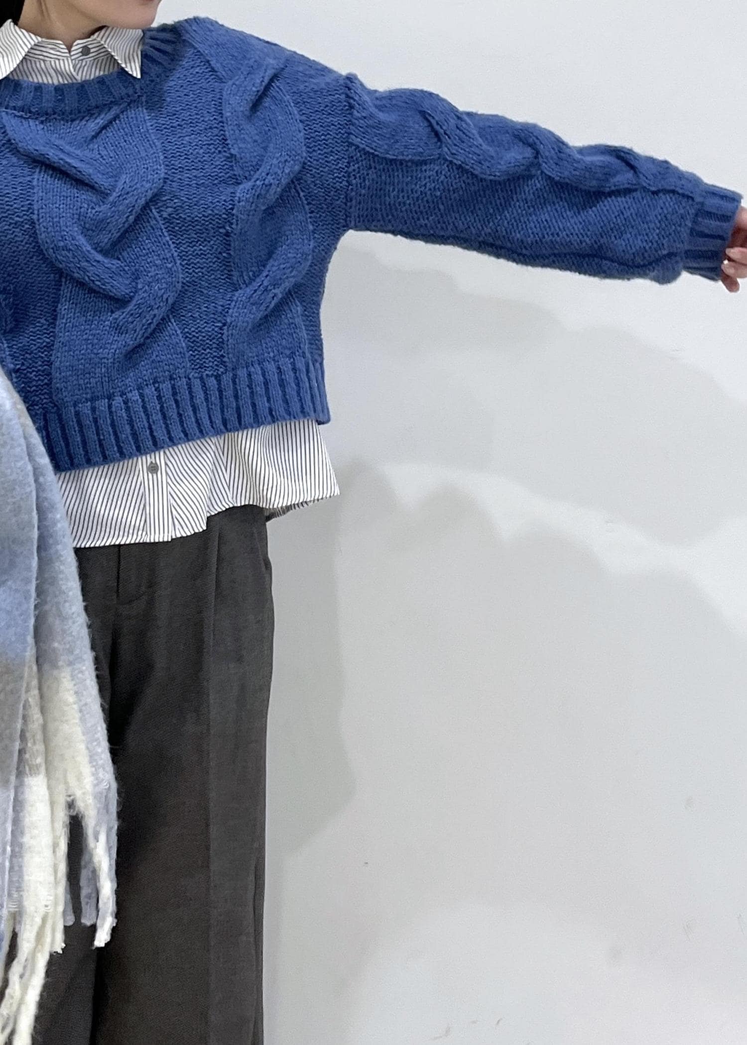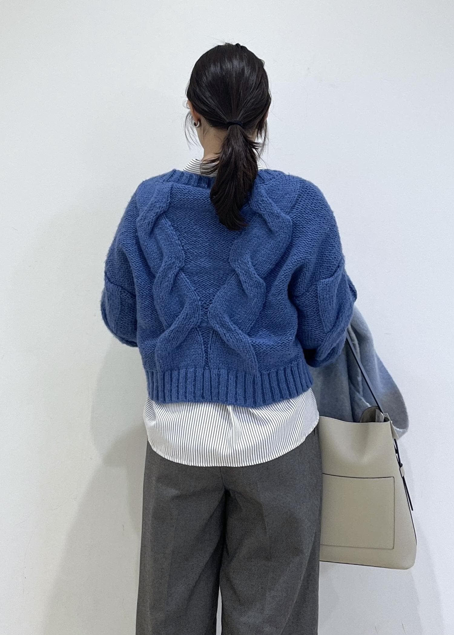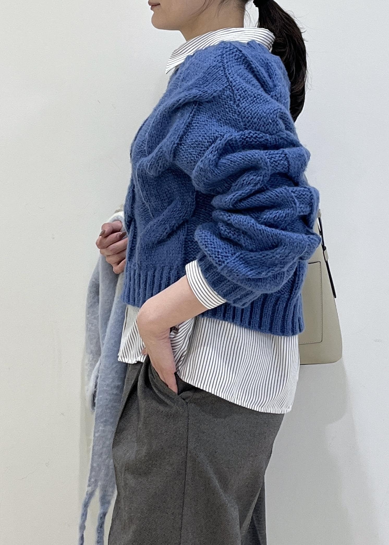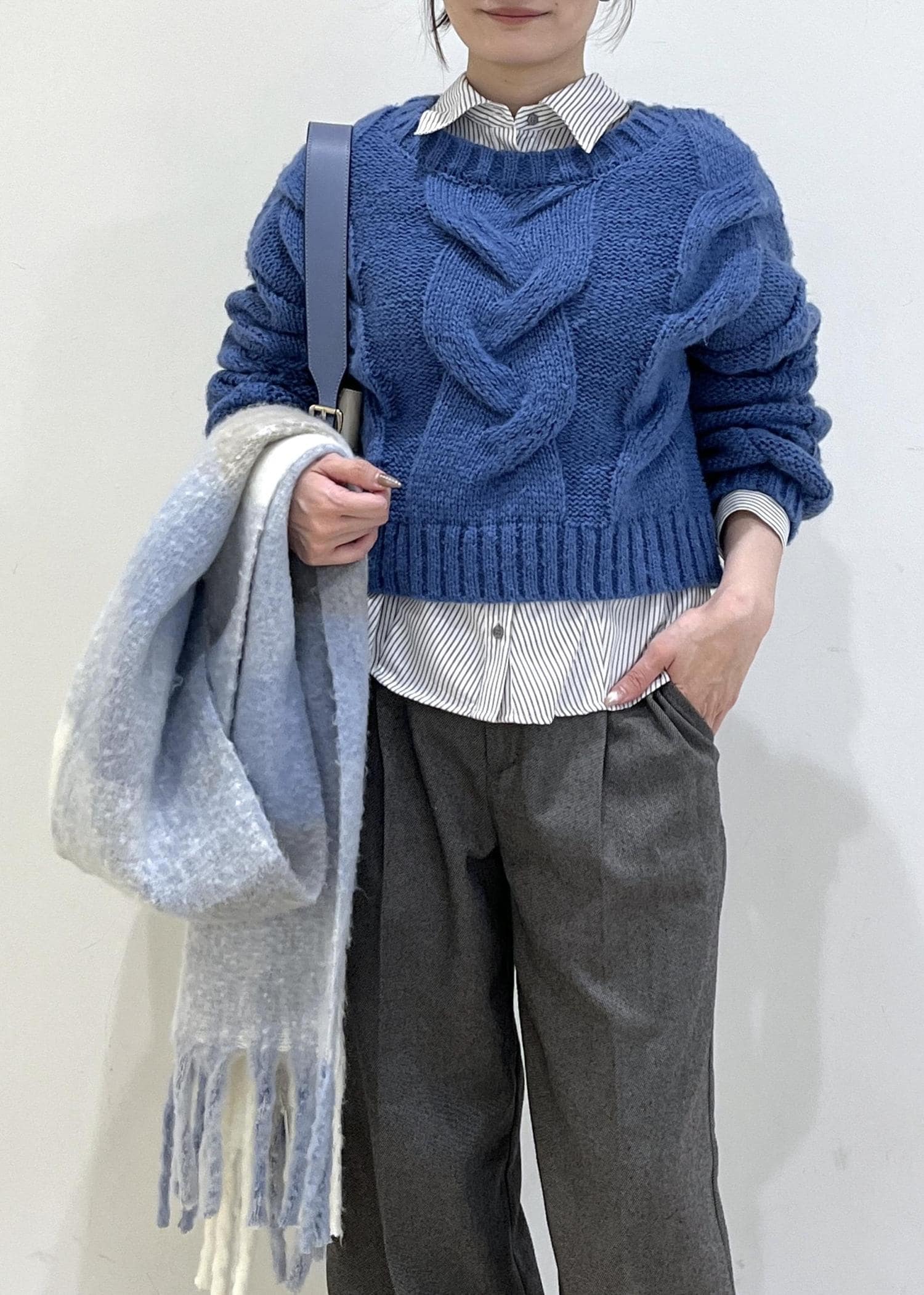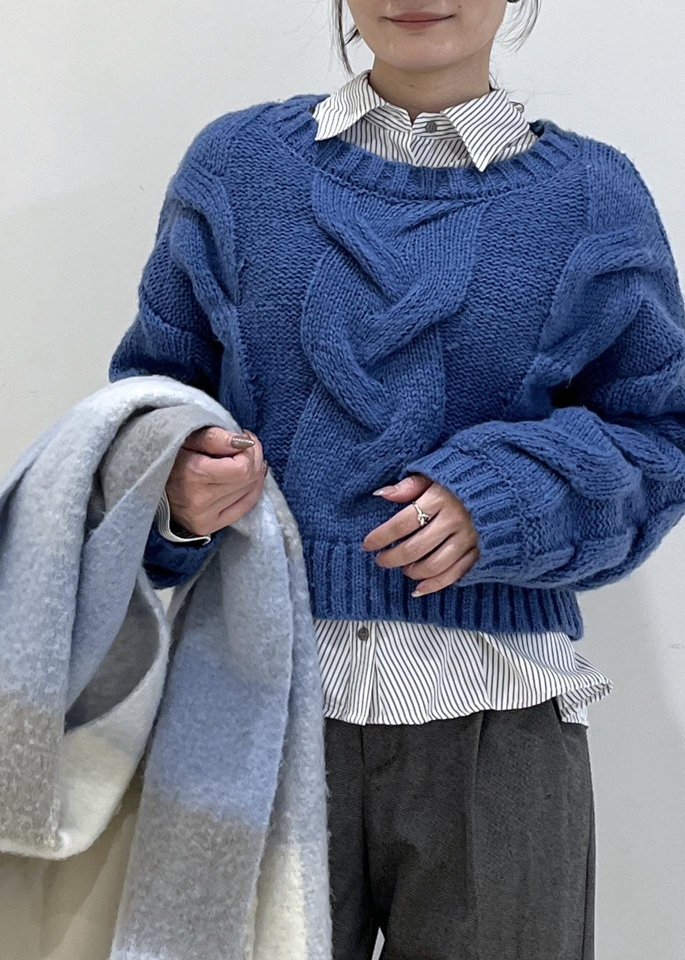 大きめなケーブルニットは