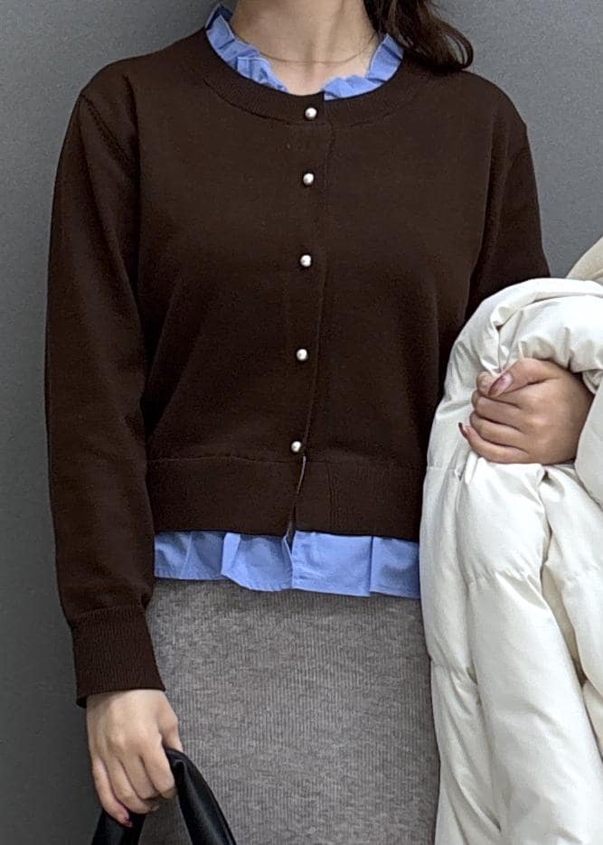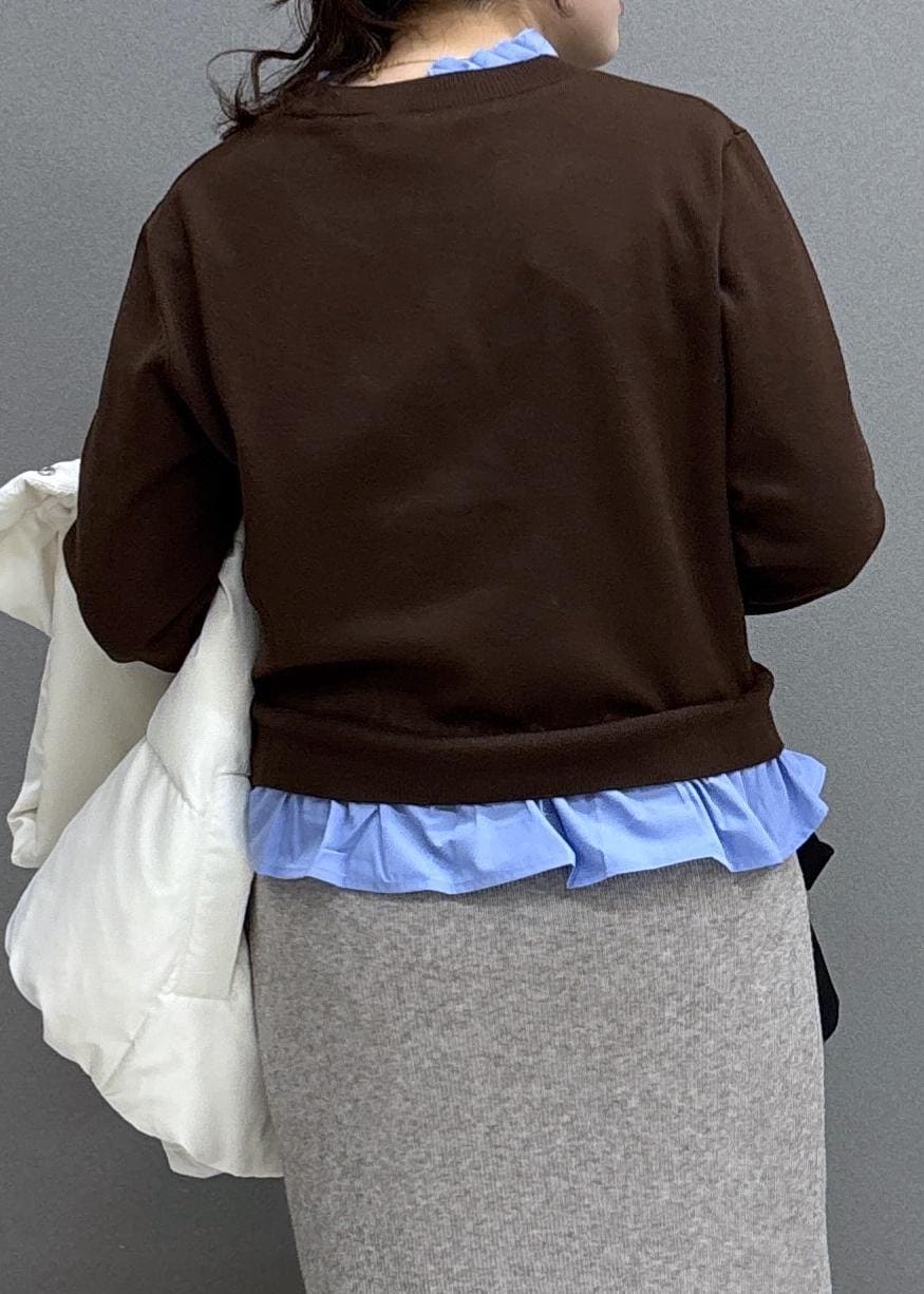 2BUY10%OFFVIS【美得】フリル襟ドッキングニットカーディガントップスダークブラウン / F¥5,929レビュー160㎝だと腰まわりがしっかり隠れる着丈。身幅はややゆとりがあり、体のラインを拾いすぎないサイズです!伸縮性のある柔らかい素材で着心地も抜群◎冬〜春まで長く着られそうな生地感です!