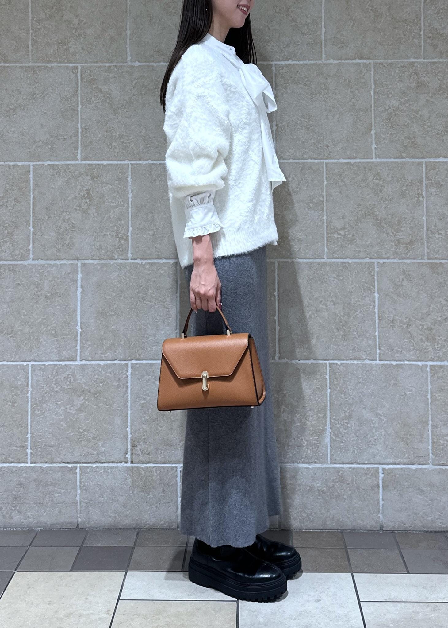 やさしい印象のコーデ。