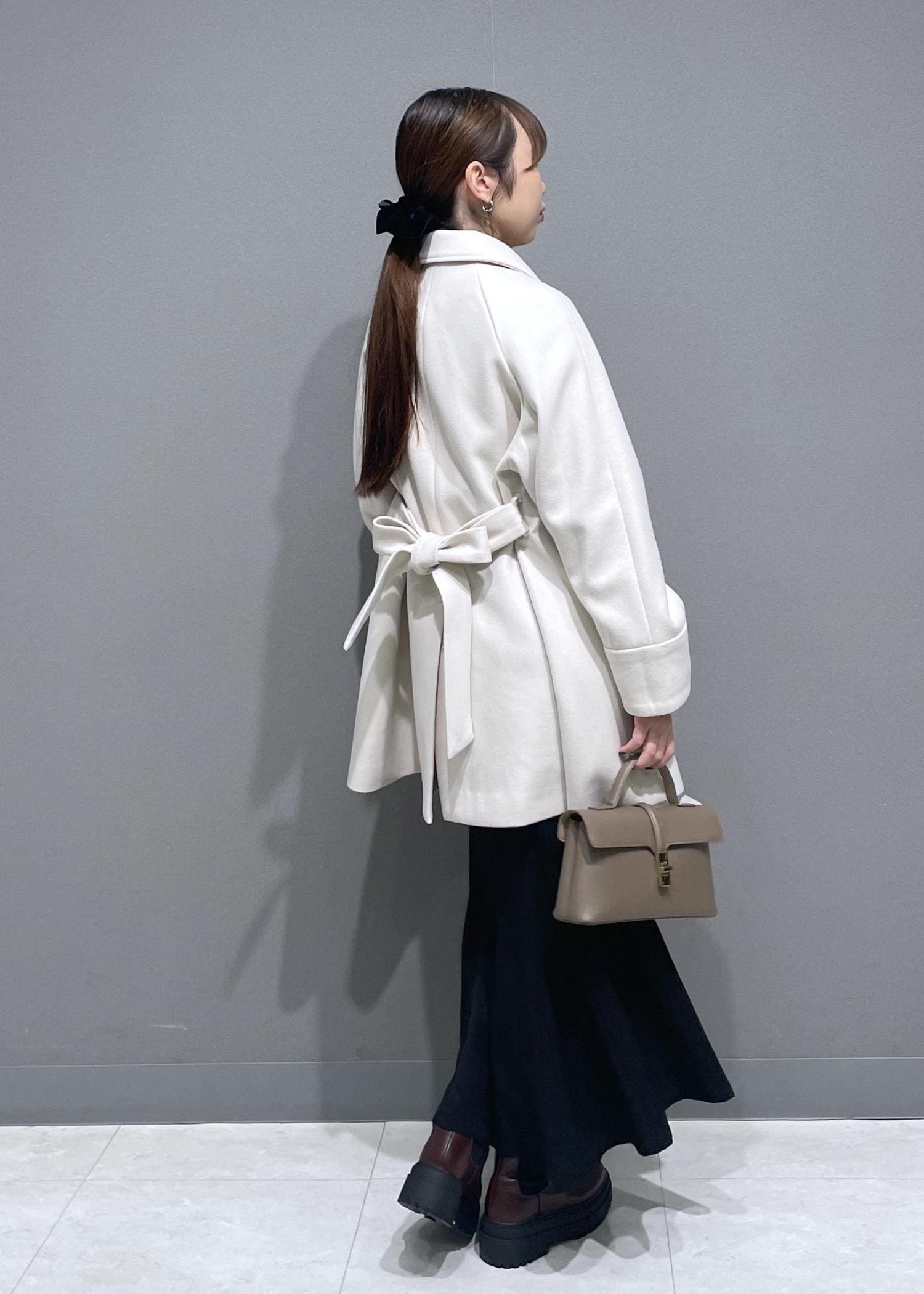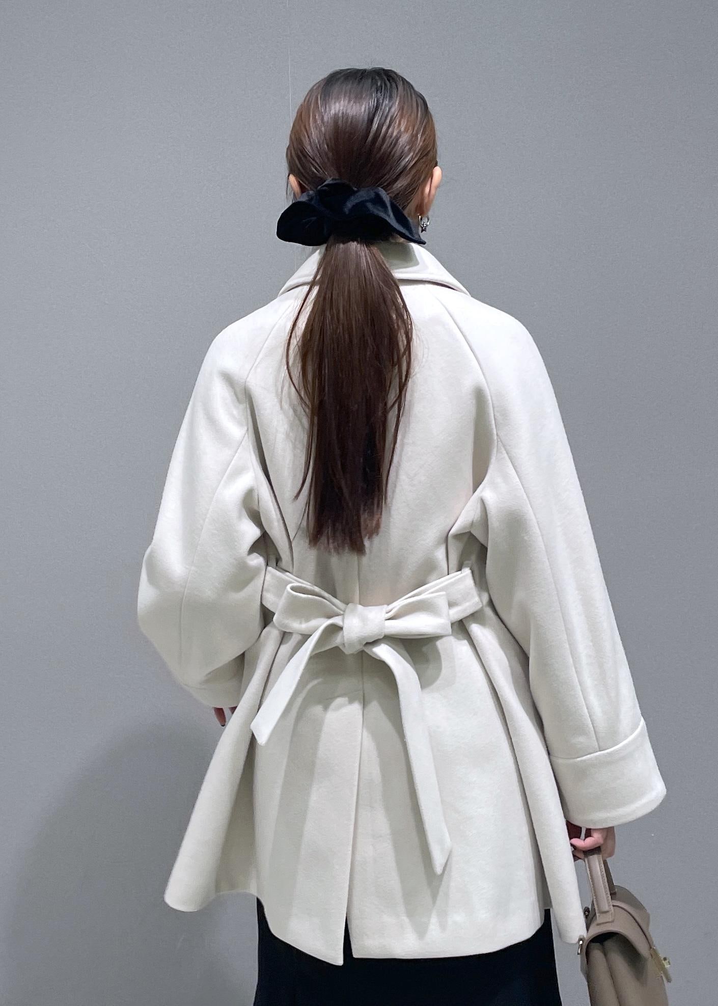 ボタンを留めてウエストのリボンを結ぶとワンピース風のシルエットにもなります -