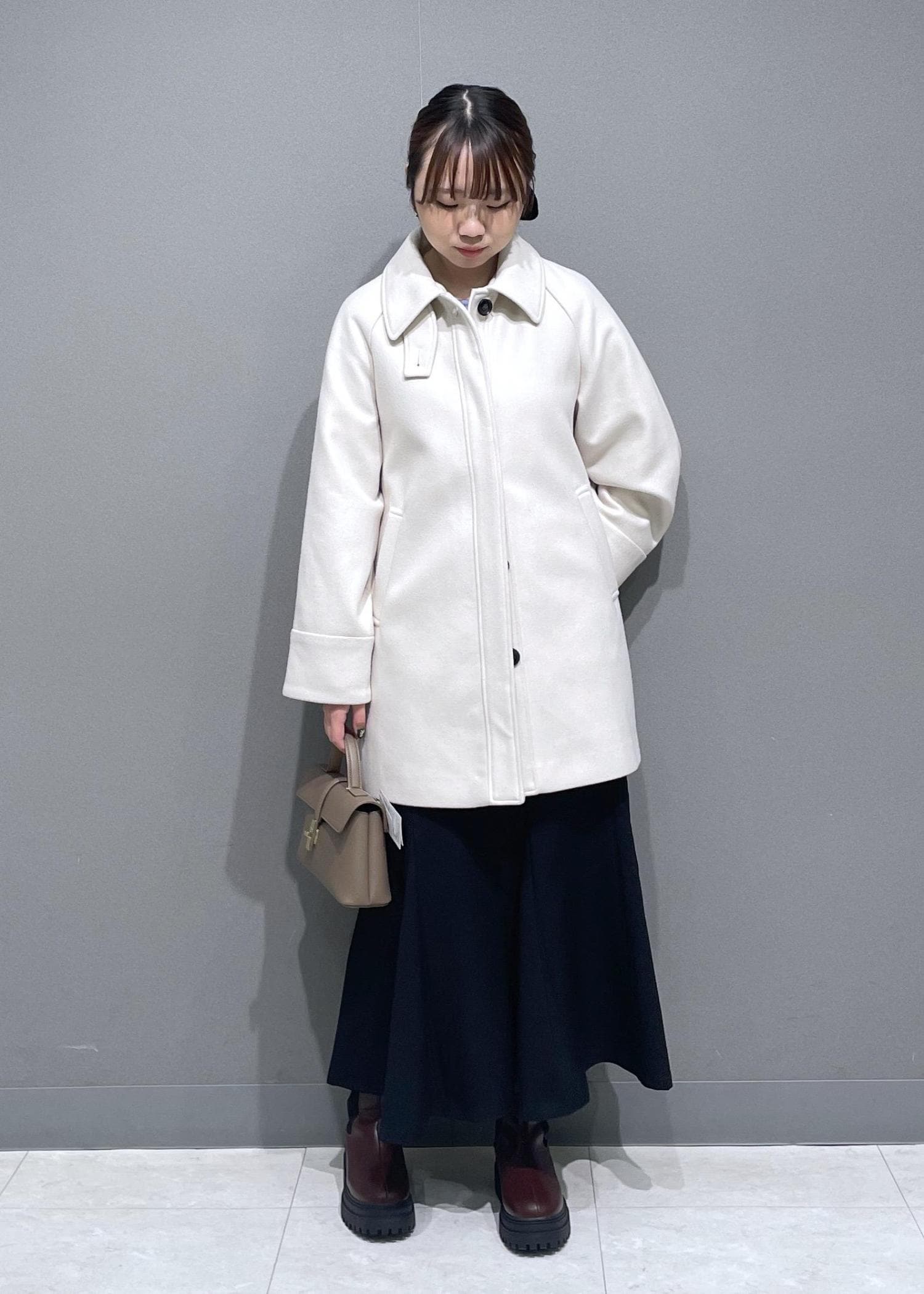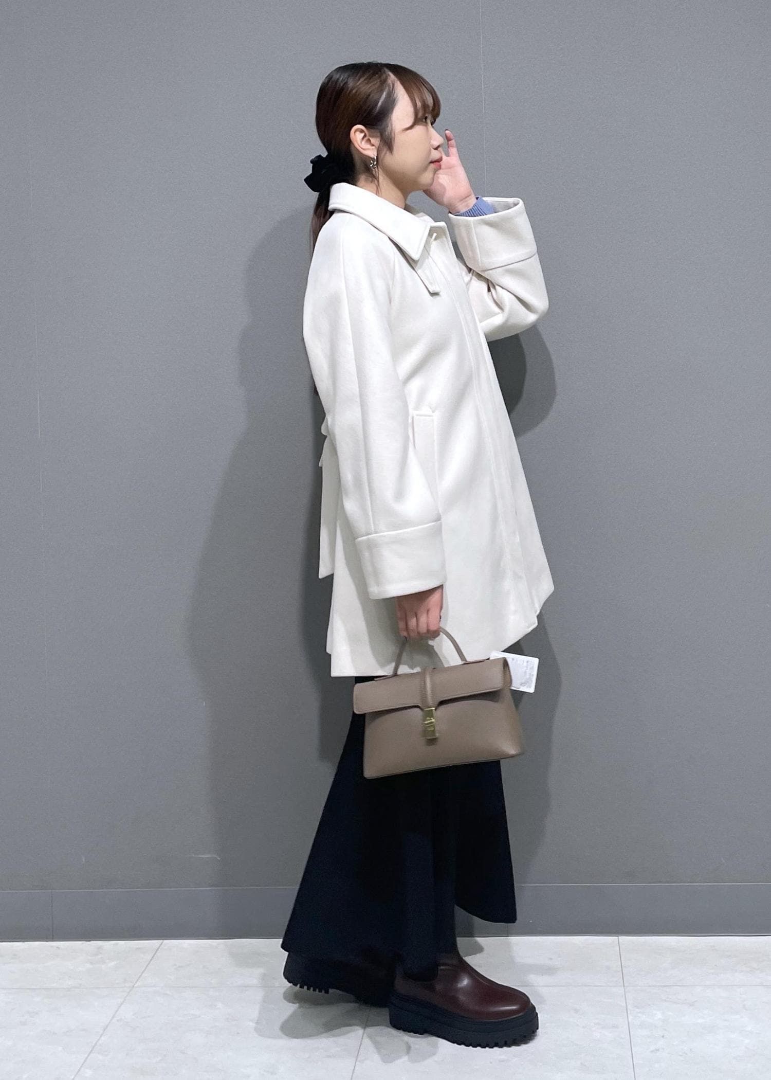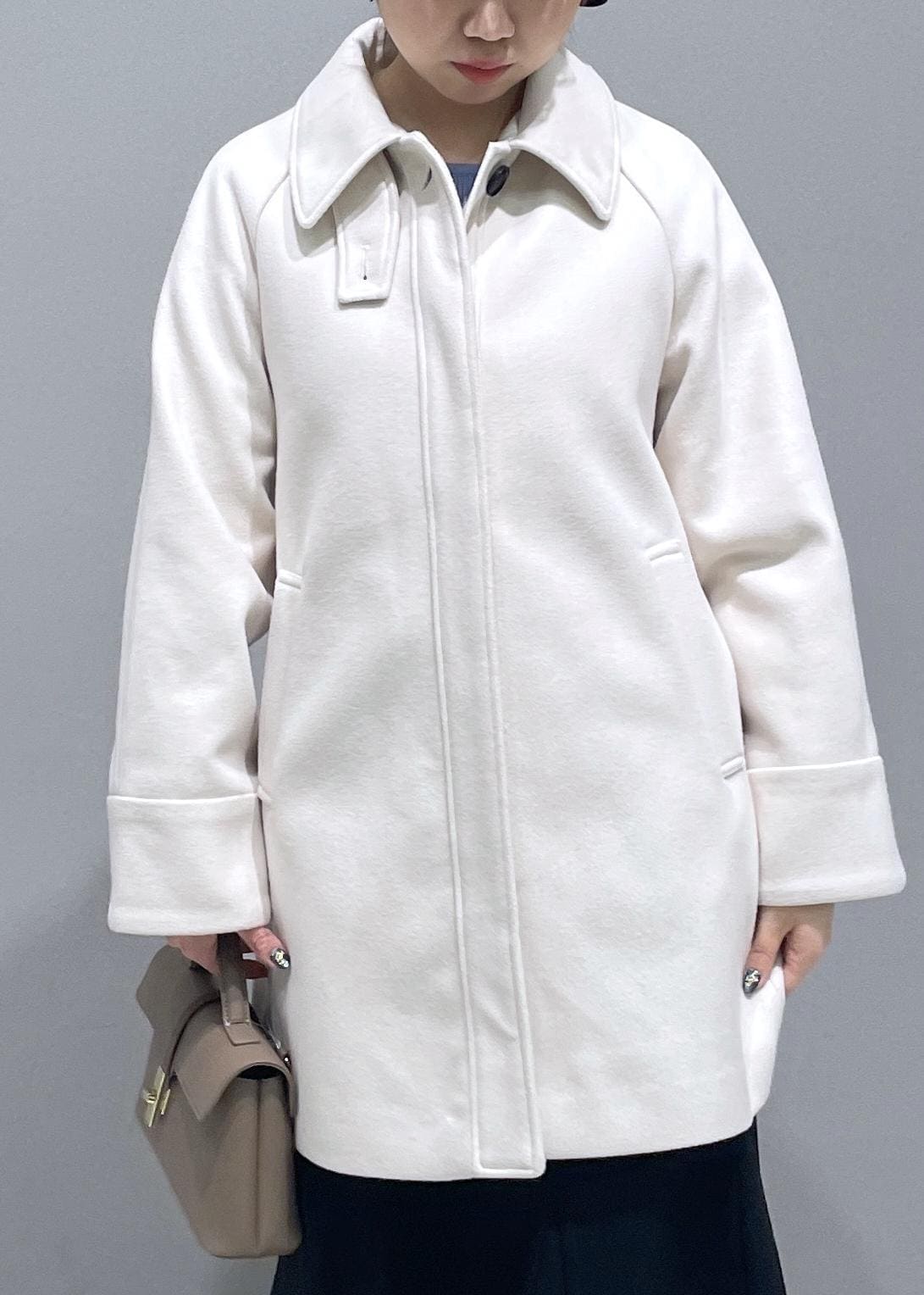 女性らしいシルエットで、スタンドカラーにして使っていただくことも可能です。