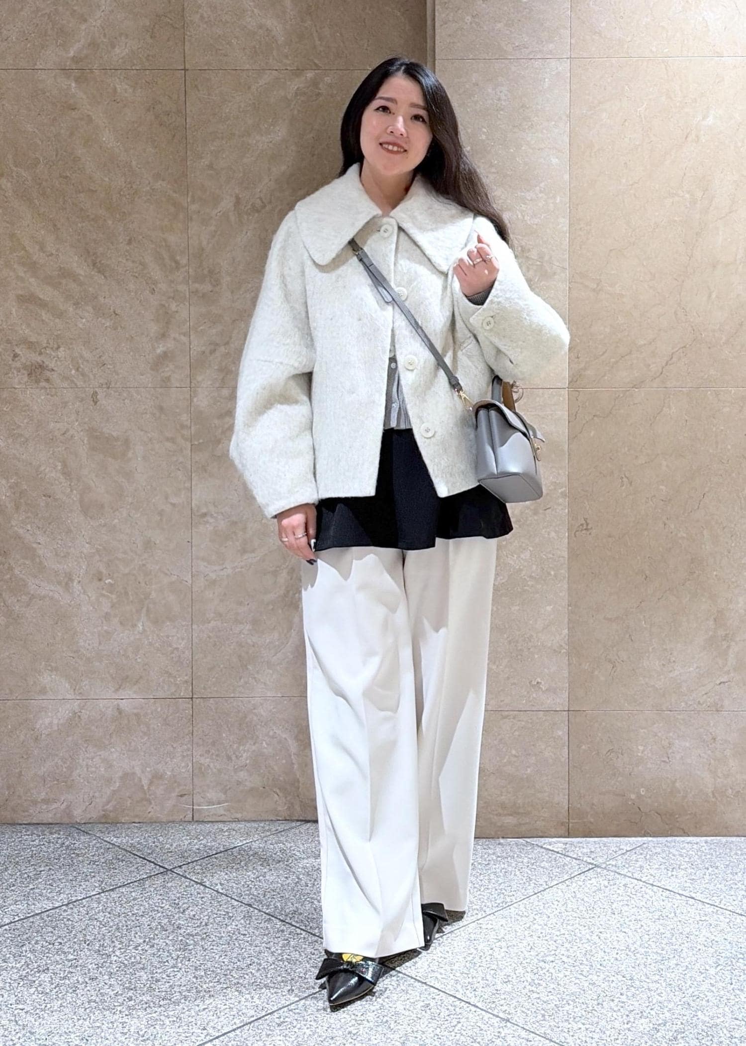 2BUY10%OFFVIS【アウター総選挙1位】ビッグカラーモモンガシャギーショートコートオフホワイト / S¥8,791レビュー後ろから見た時のほわんとしたスタイルが可愛すぎて、体型カバーもバッチリ◎