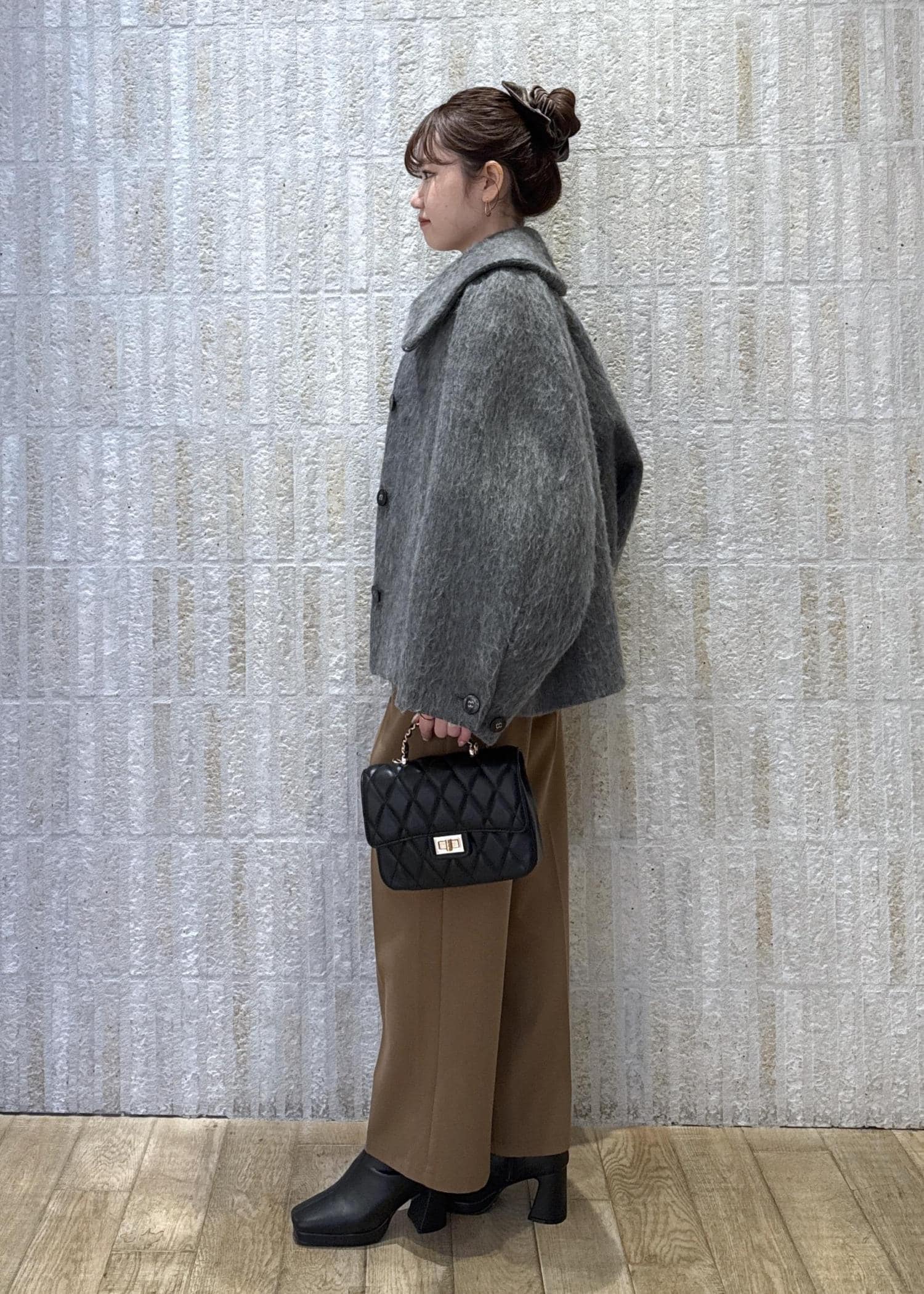 アウターは、総選挙1位の人気モモンガショートコートを羽織って暖かさもプラス!