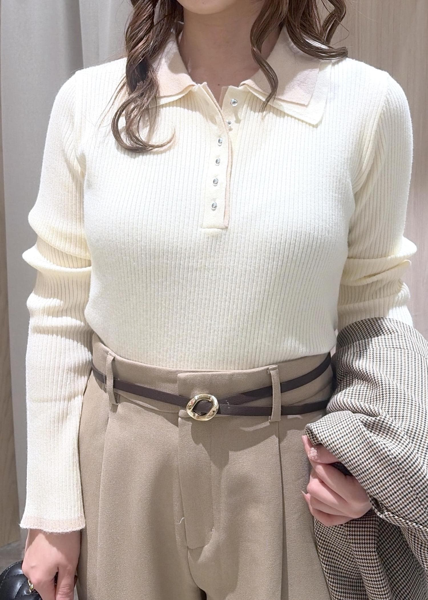 2BUY10%OFFVISダブルカラーポロニットトップスオフホワイト / F¥5,929レビューモチモチの生地で着心地が良いです◎