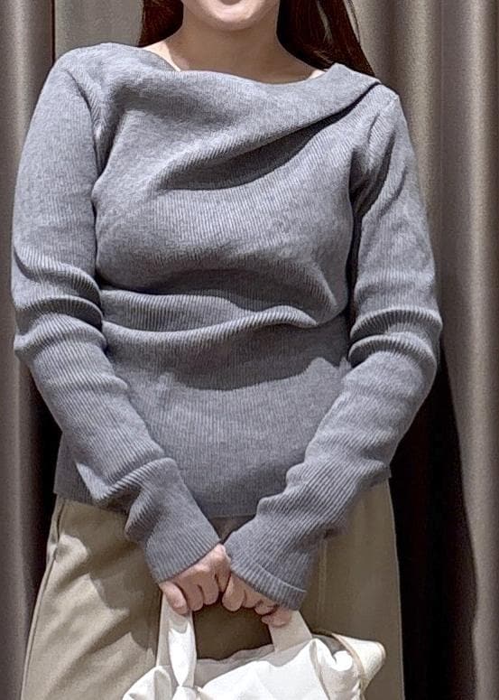 少し厚みのあるニットで、オフショルダー、ドレープデザインどちらでも着れるトップスです! -