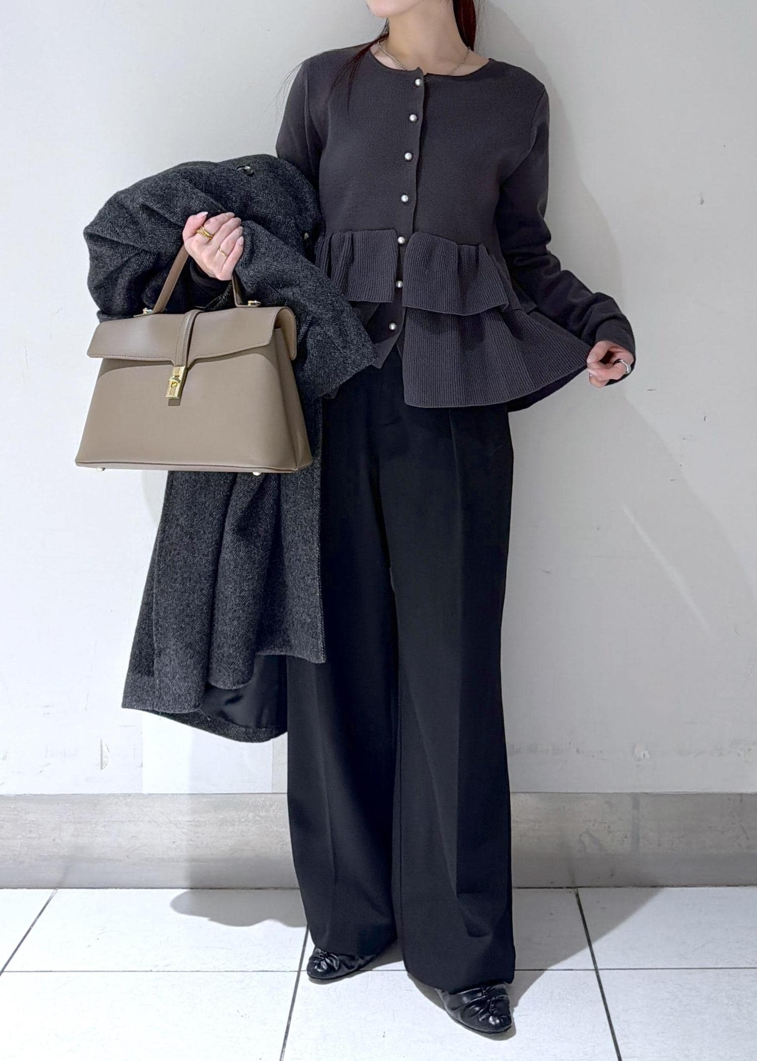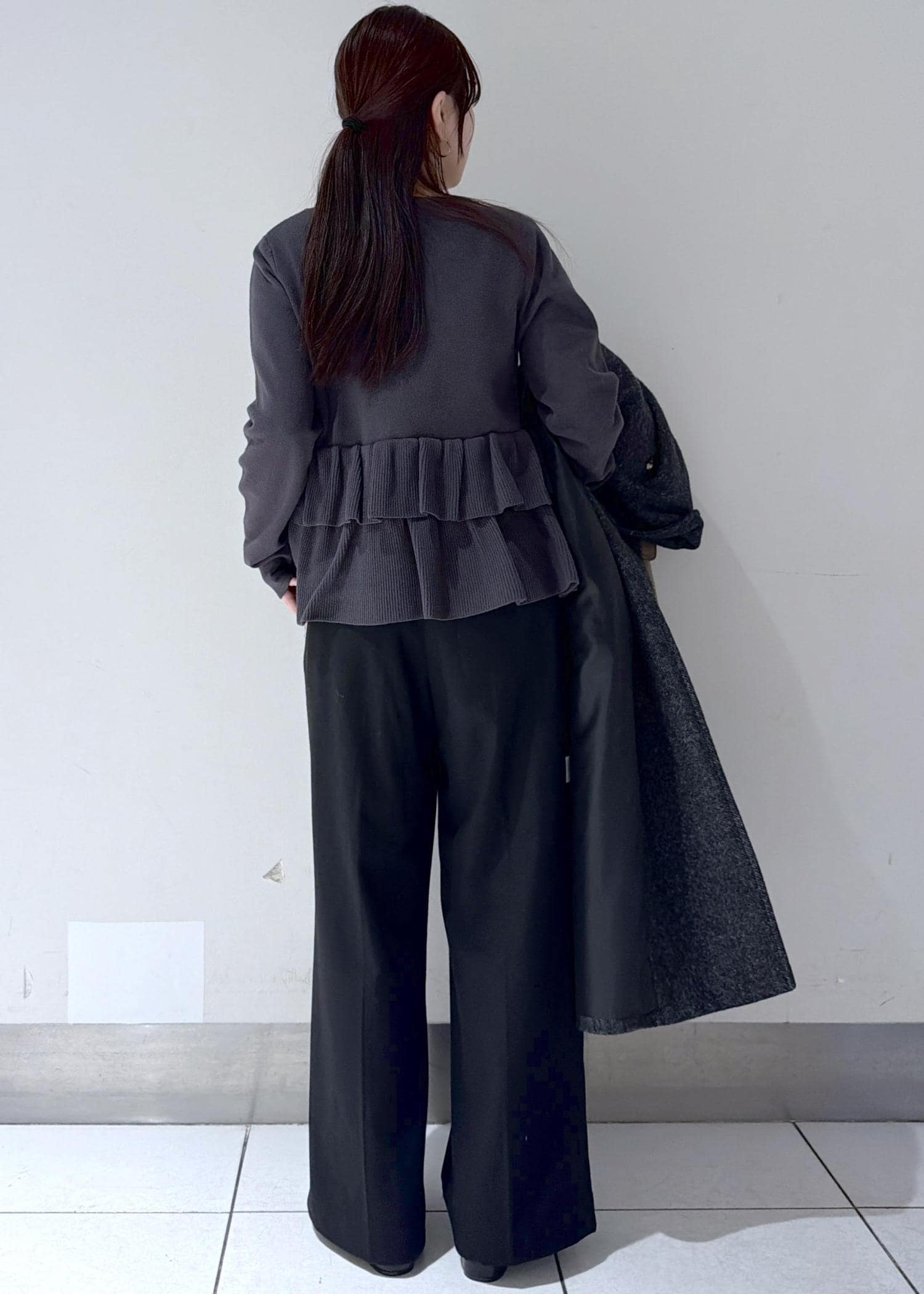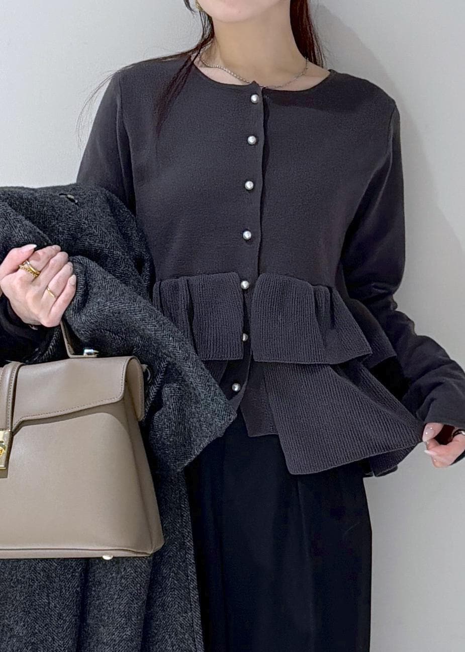 2BUY10%OFFVISティアードペプラムニットカーディガンチャコール / F¥6,589レビュー152cmでヒップにかかるくらいの着丈でした!