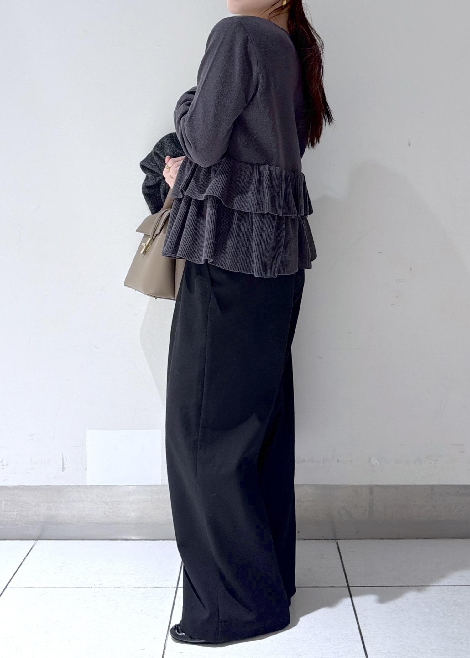 ペプラムの切り返し位置が少し高めなので、脚長効果になってスタイルアップしました◎ -