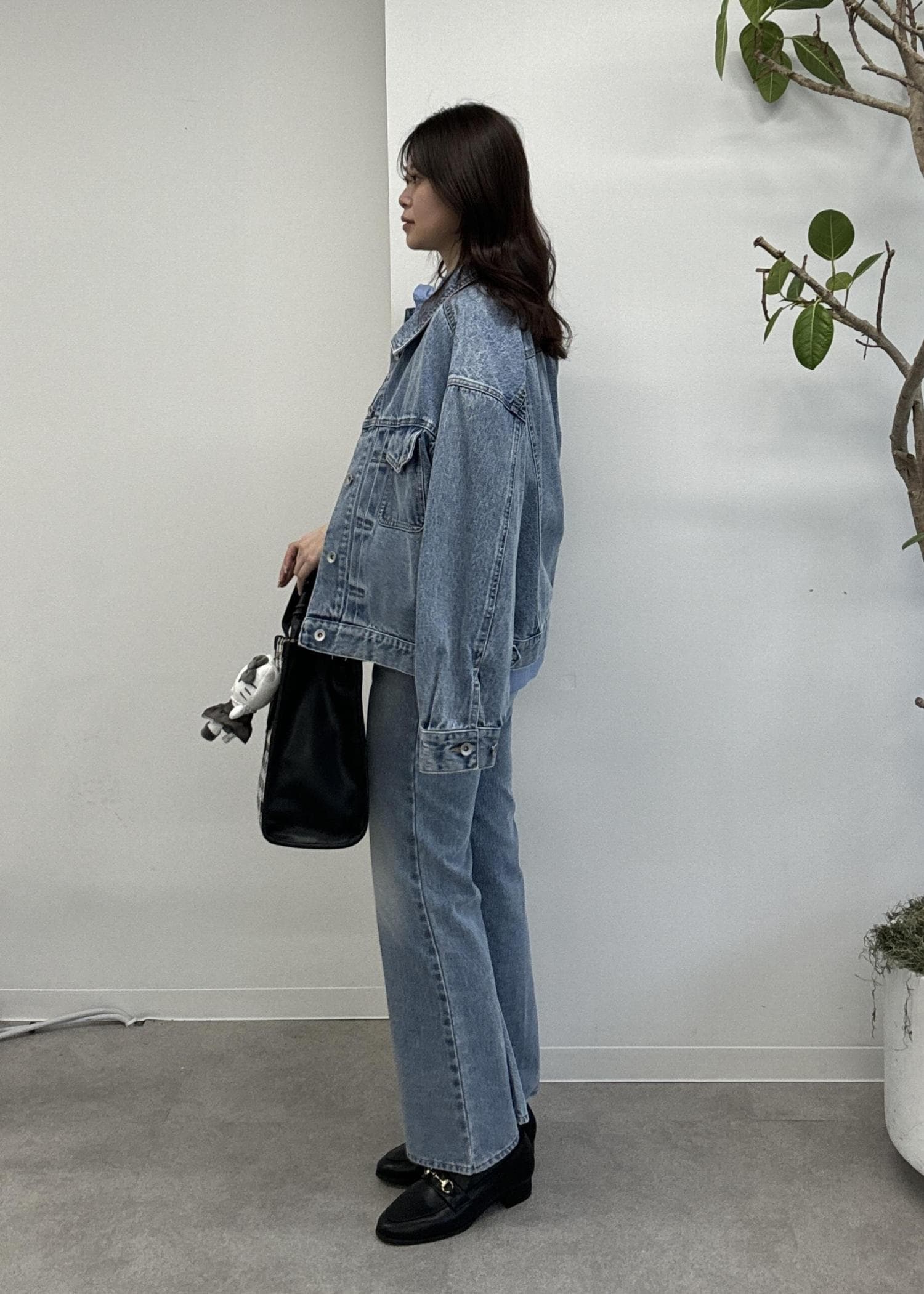 春定番のデニムはジャケットとパンツのセットアップスタイルで春に着たいスタイリングに。