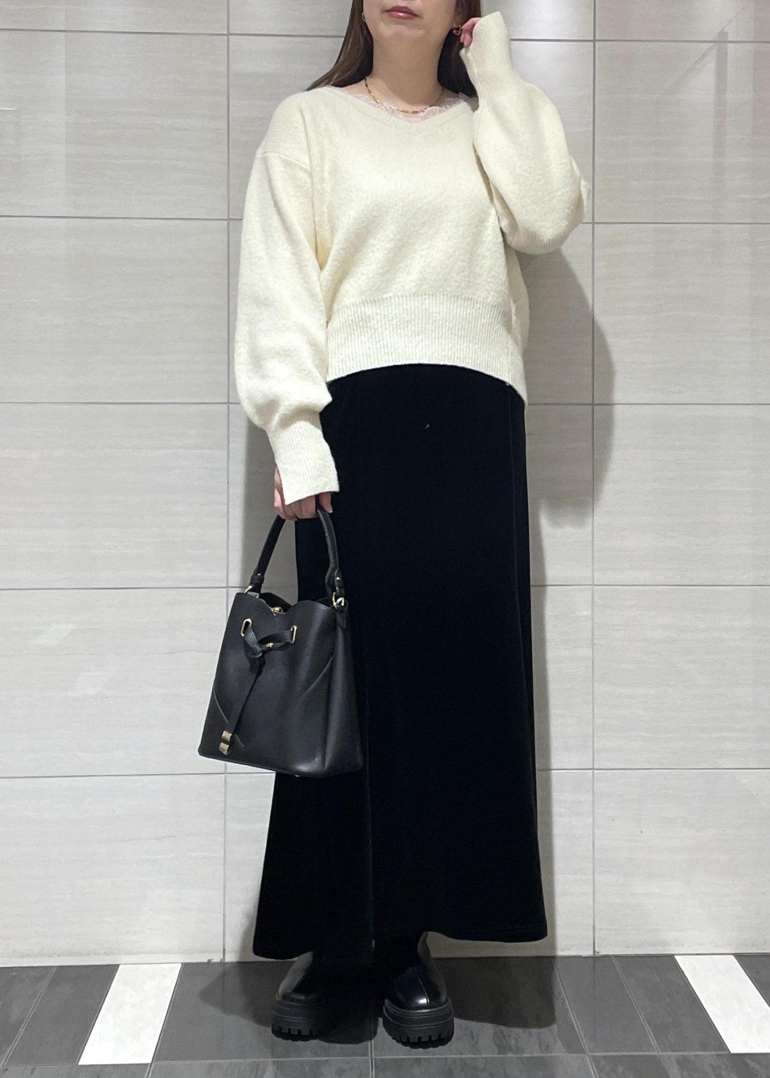 骨格ストレート上半身厚めですが程よいゆとりがあり鎖骨が綺麗に見えるVネックなのでスッキリ見えし1枚でさらっと着れます◎ -