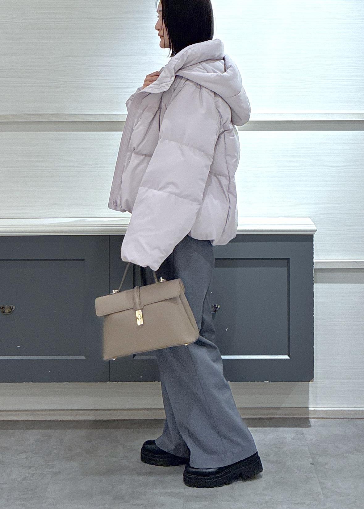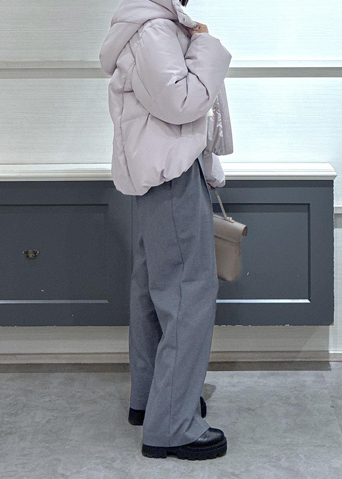 ダウンジャケットはピンクですがボトムスをパンツで合わせ、さらに大人なグレーを選ぶと可愛過ぎないので30代でもピンクのアウターを楽しめました♡