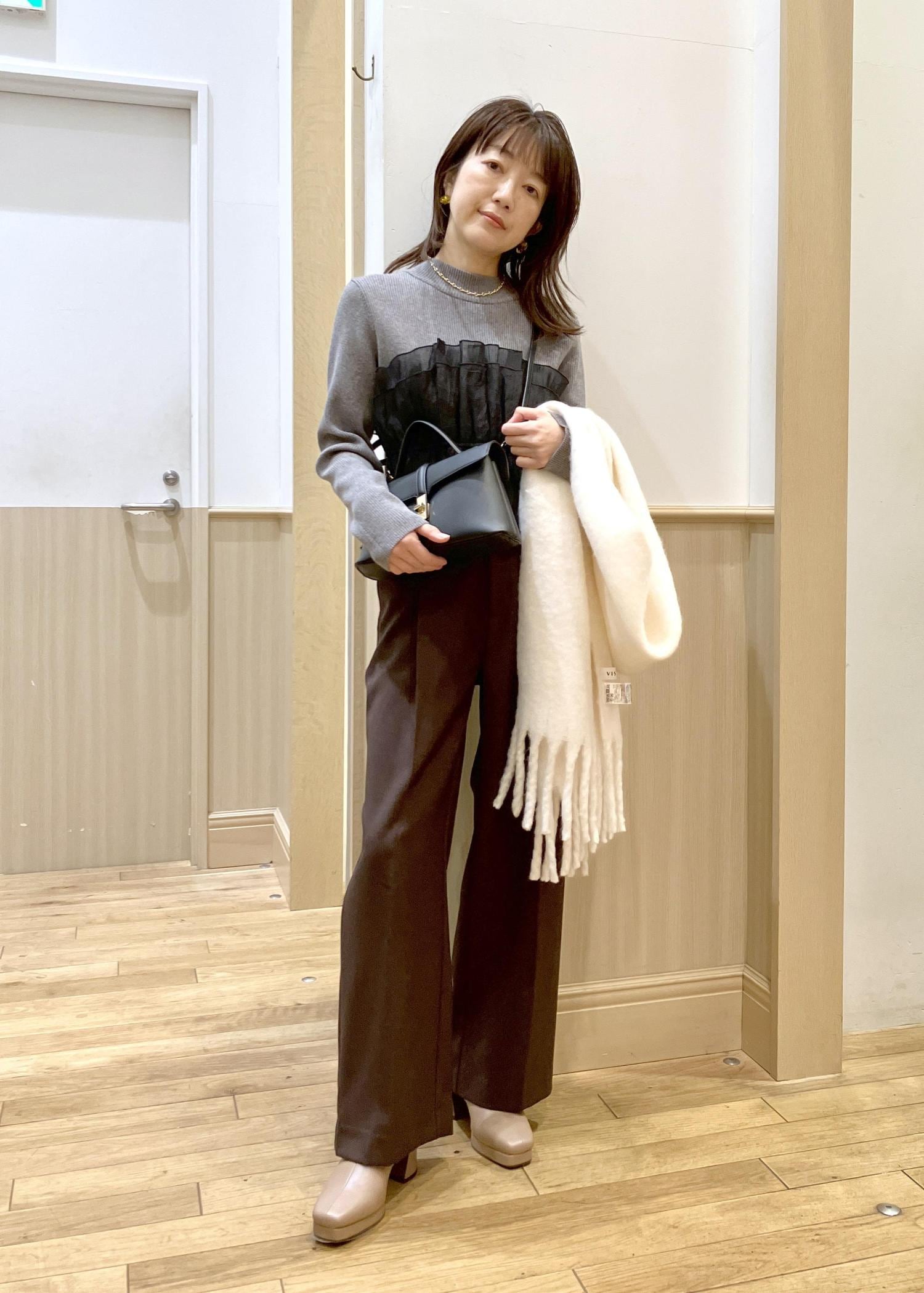 アウターを脱いでもバッチリな着映えするドッキングニットは1枚でも主役級でとってもオススメです。