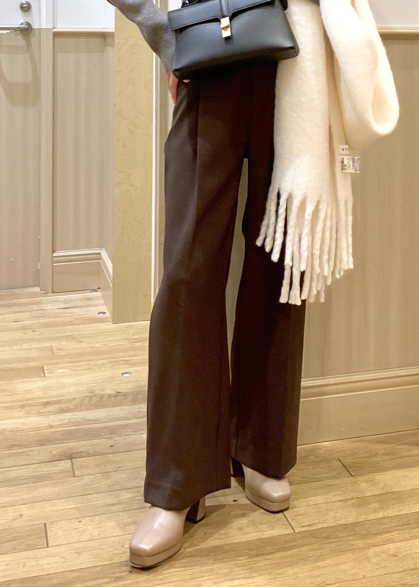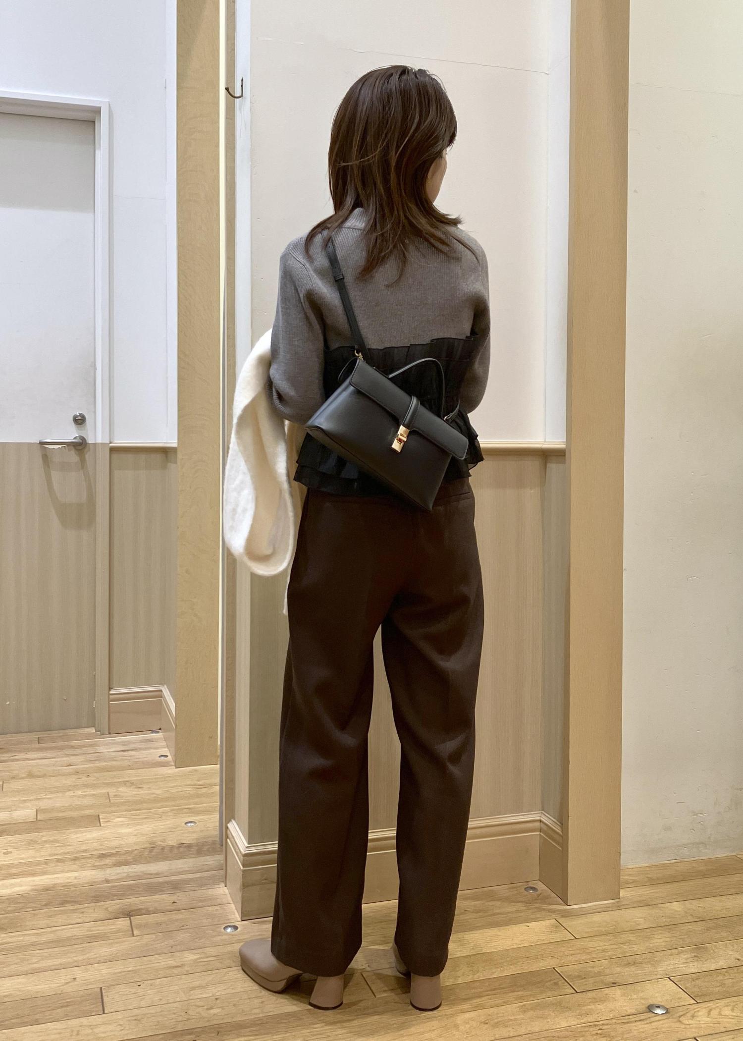 ボトムのカラーをトレンドのブラウンカラーにしてカッチリしすぎないオシャレな印象を意識しました。