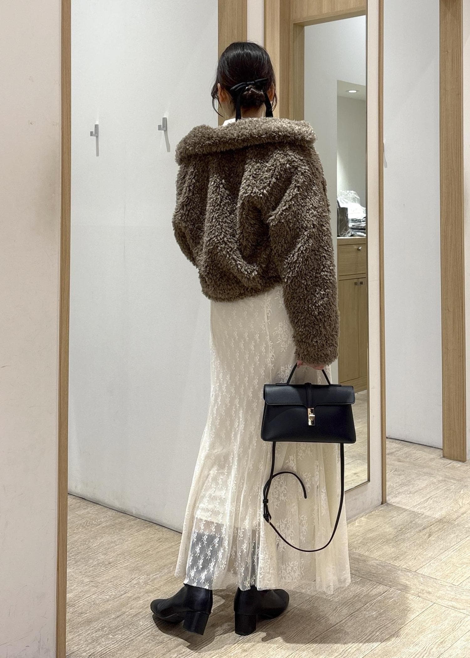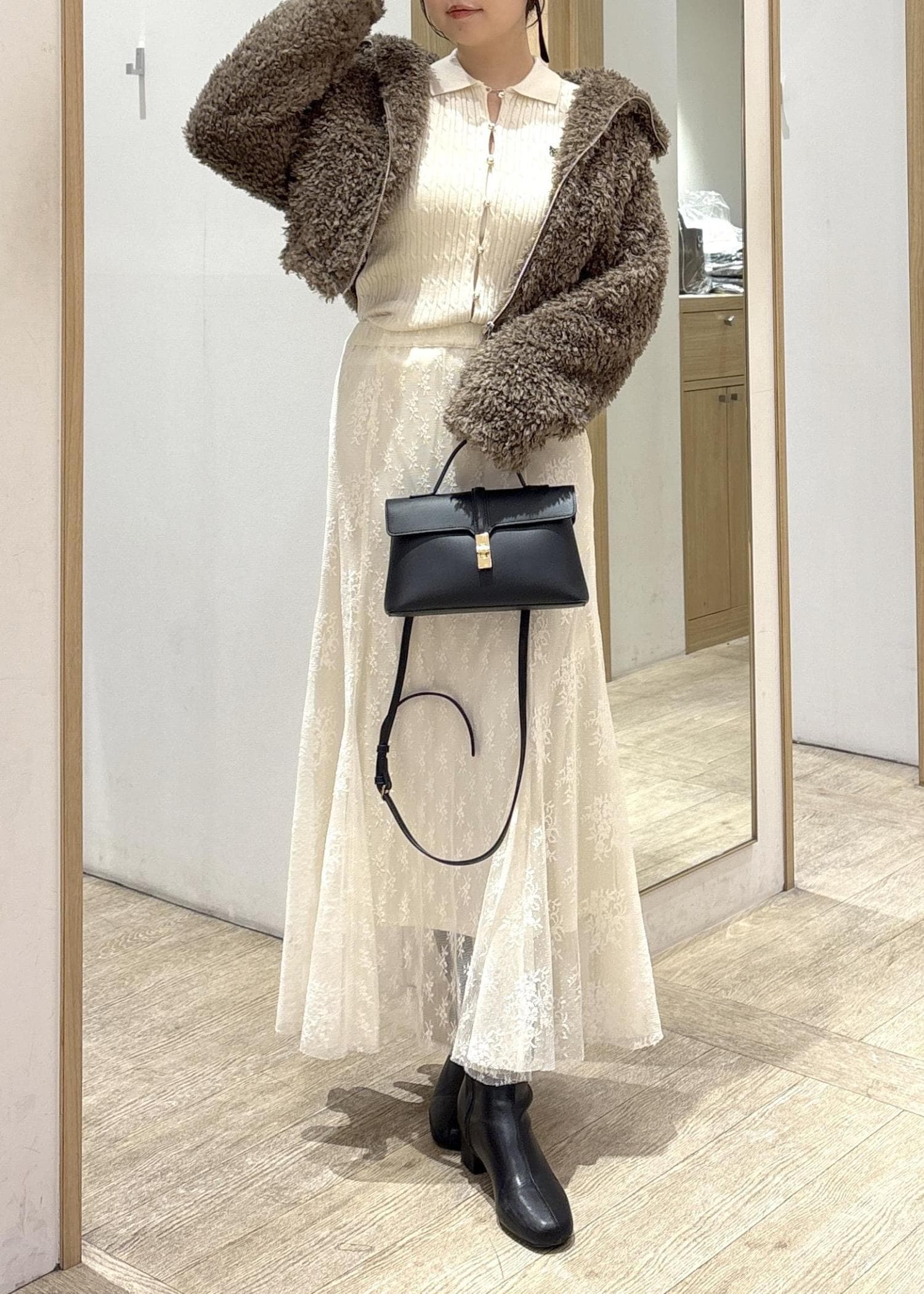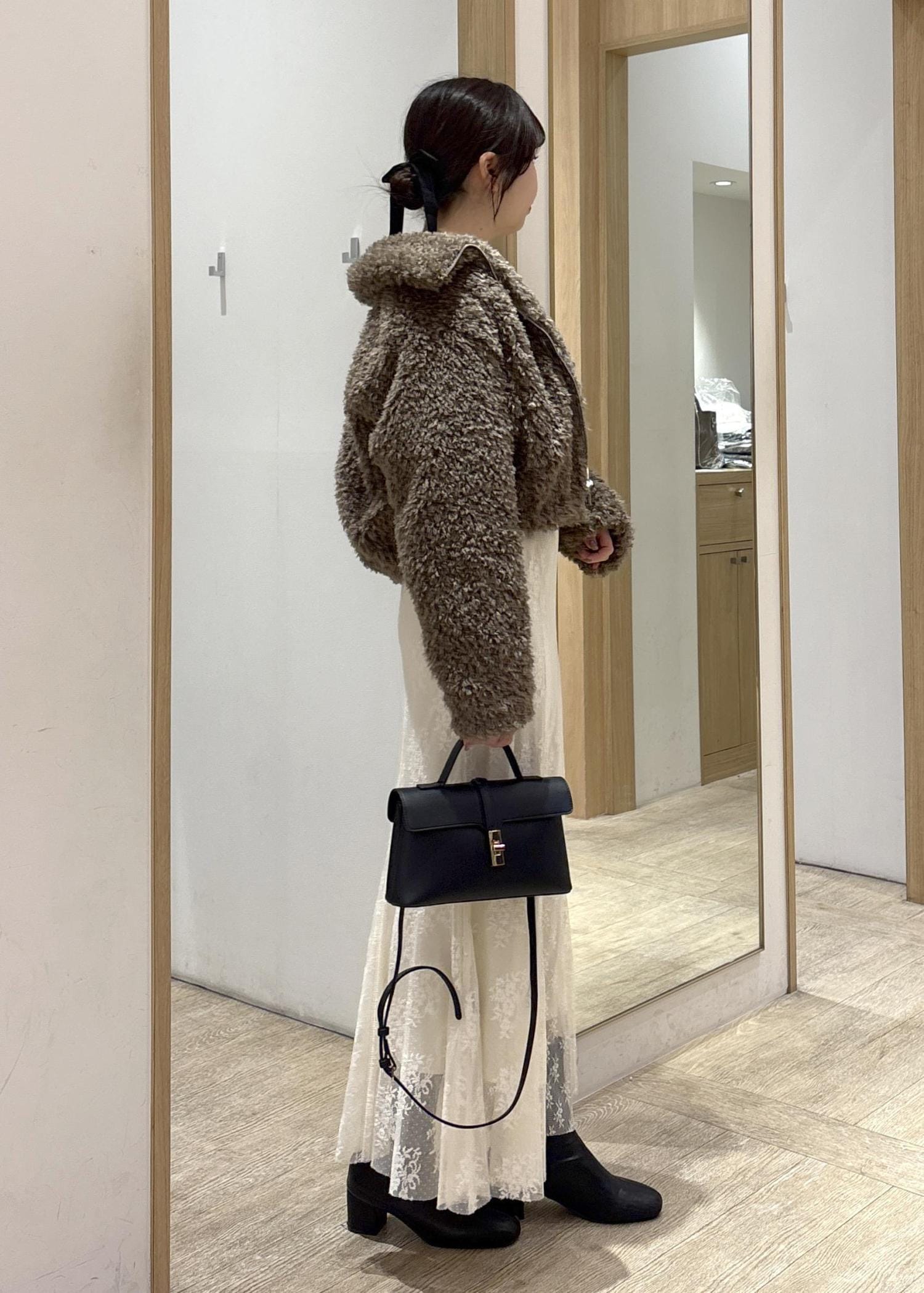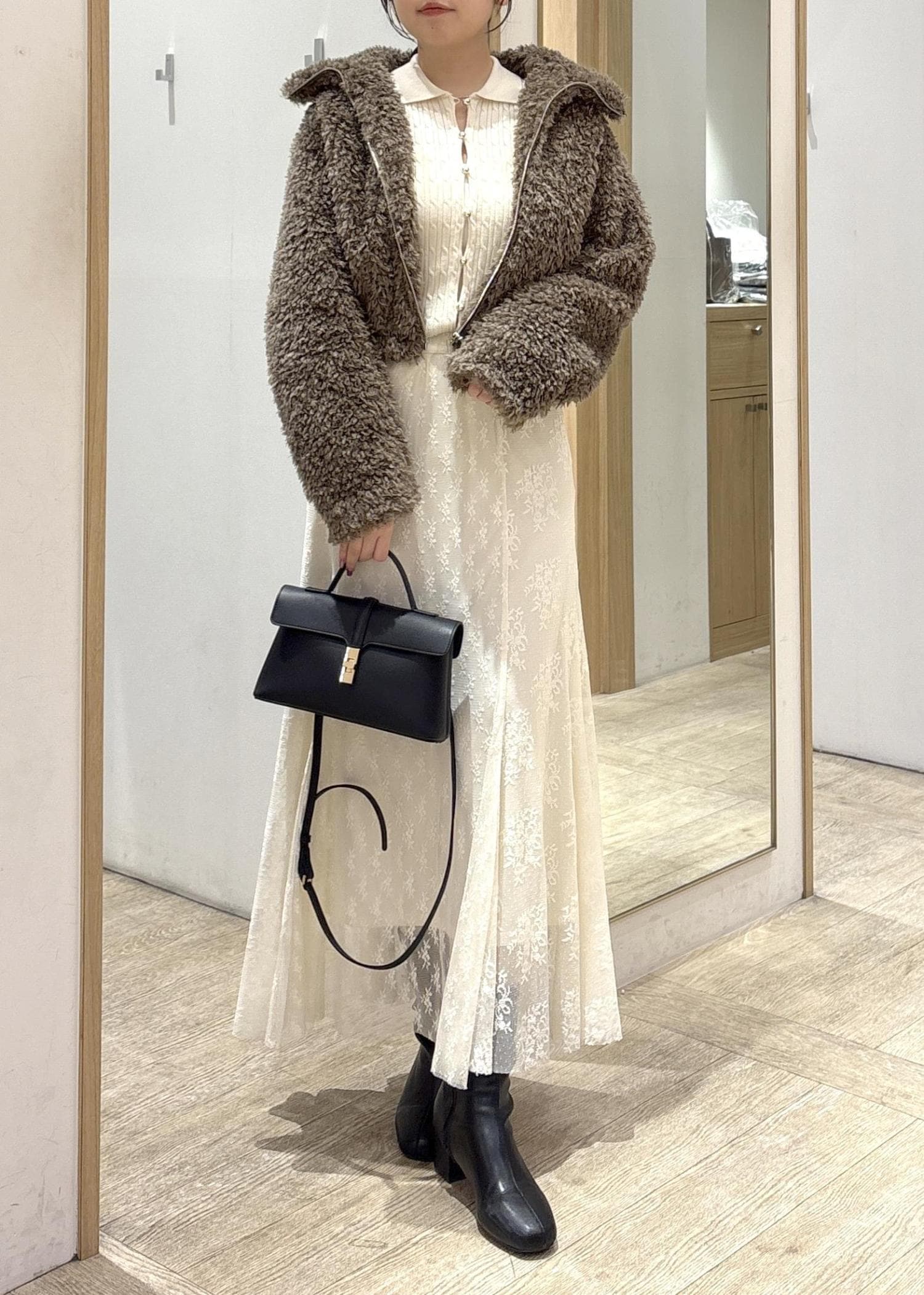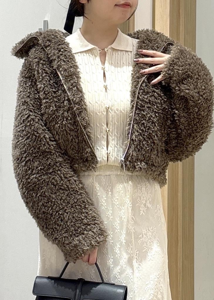 2BUY10%OFFVISブローチ付きアソートファーブルゾンブラウン / F¥11,264レビューふわっとした素材感が可愛いショート丈のボアアウターです!コンパクトな着丈なので、重たく見えがちなボアでもバランスが取りやすく、腰位置を高く見せてくれます。ボリュームはありつつも丈が短い分、コーデ全体がすっきりまとまるのがポイントです。