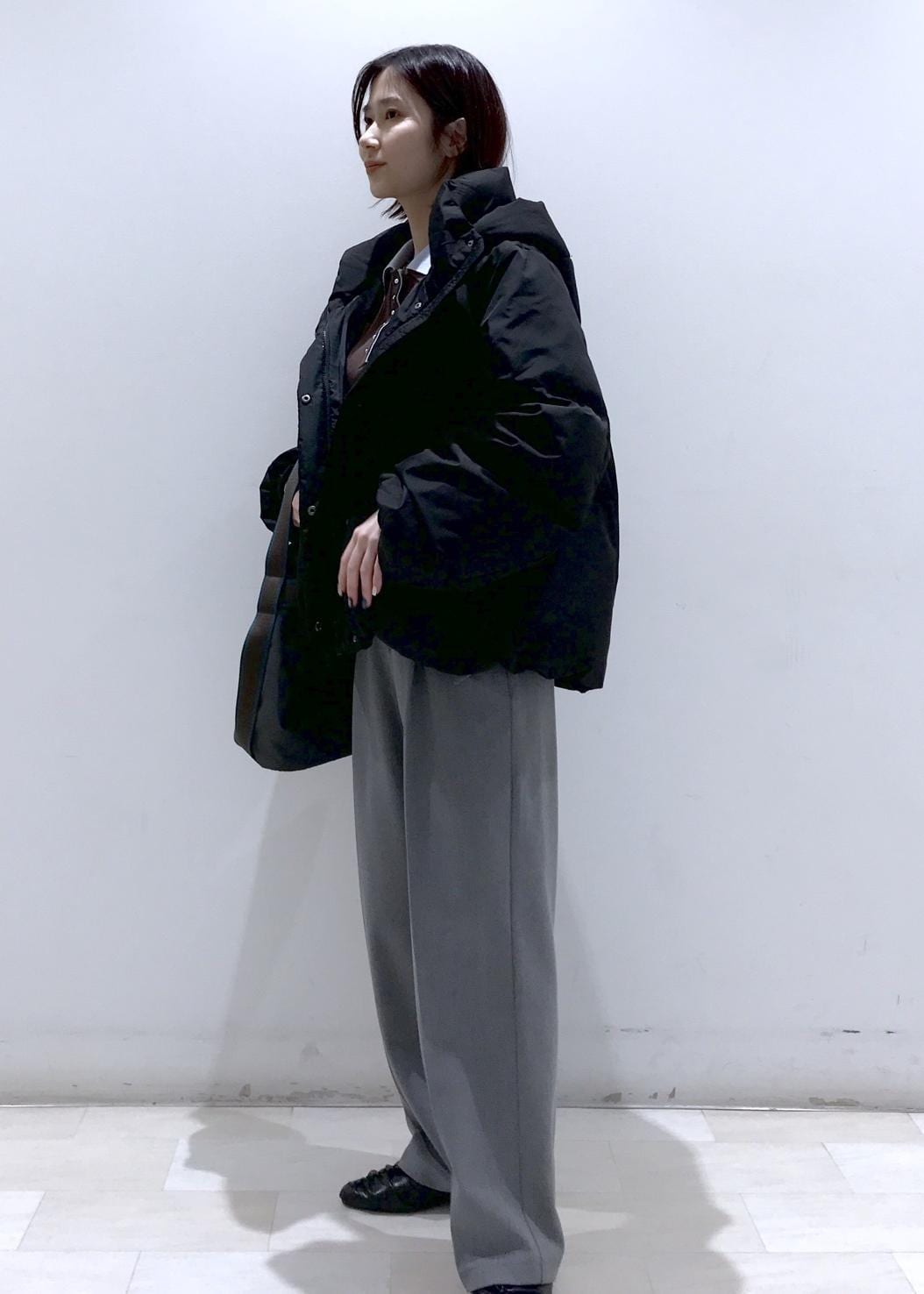 腕や身幅はゆとりがあるので、肉厚なニットと合わせても着膨れしにくいです。
