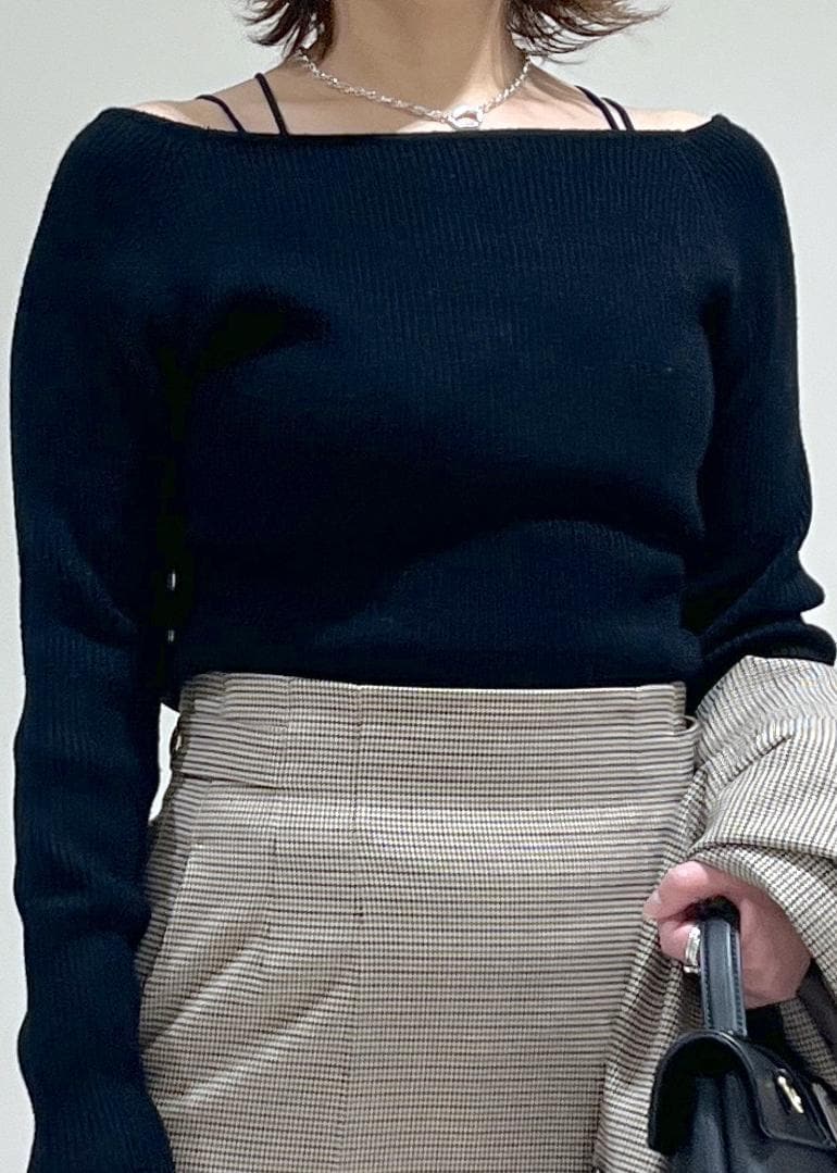 オフショルとしても使えて抜け感のあるシンプルリブニットです。