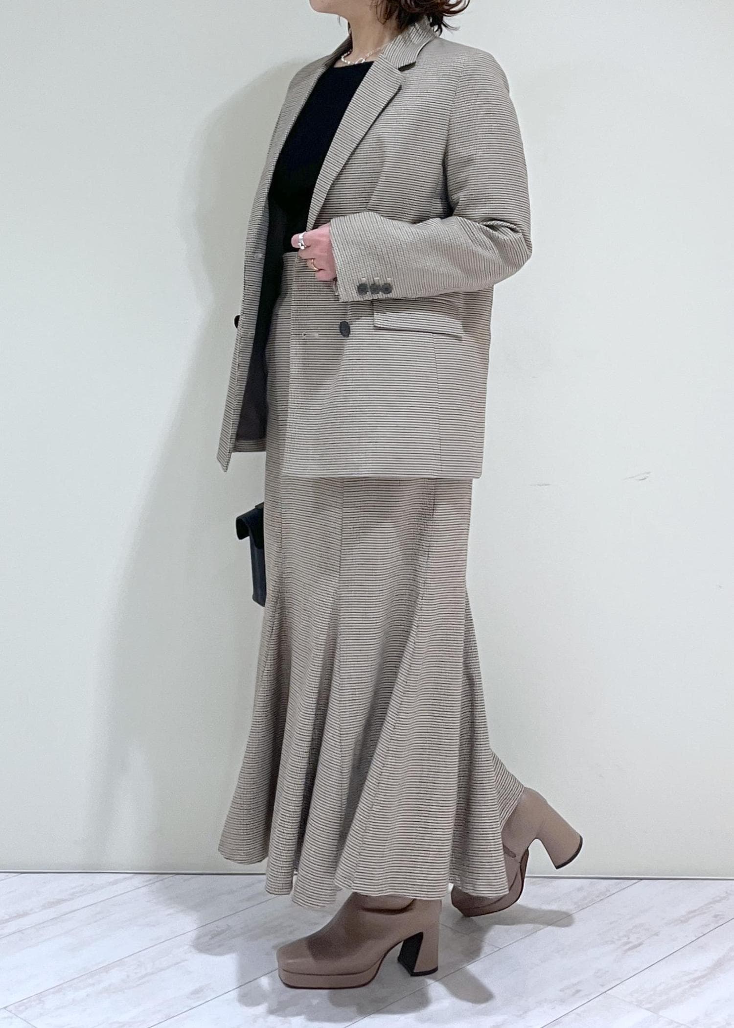 ジャケットとマーメイドスカートでオシャレなセットアップコーデです!