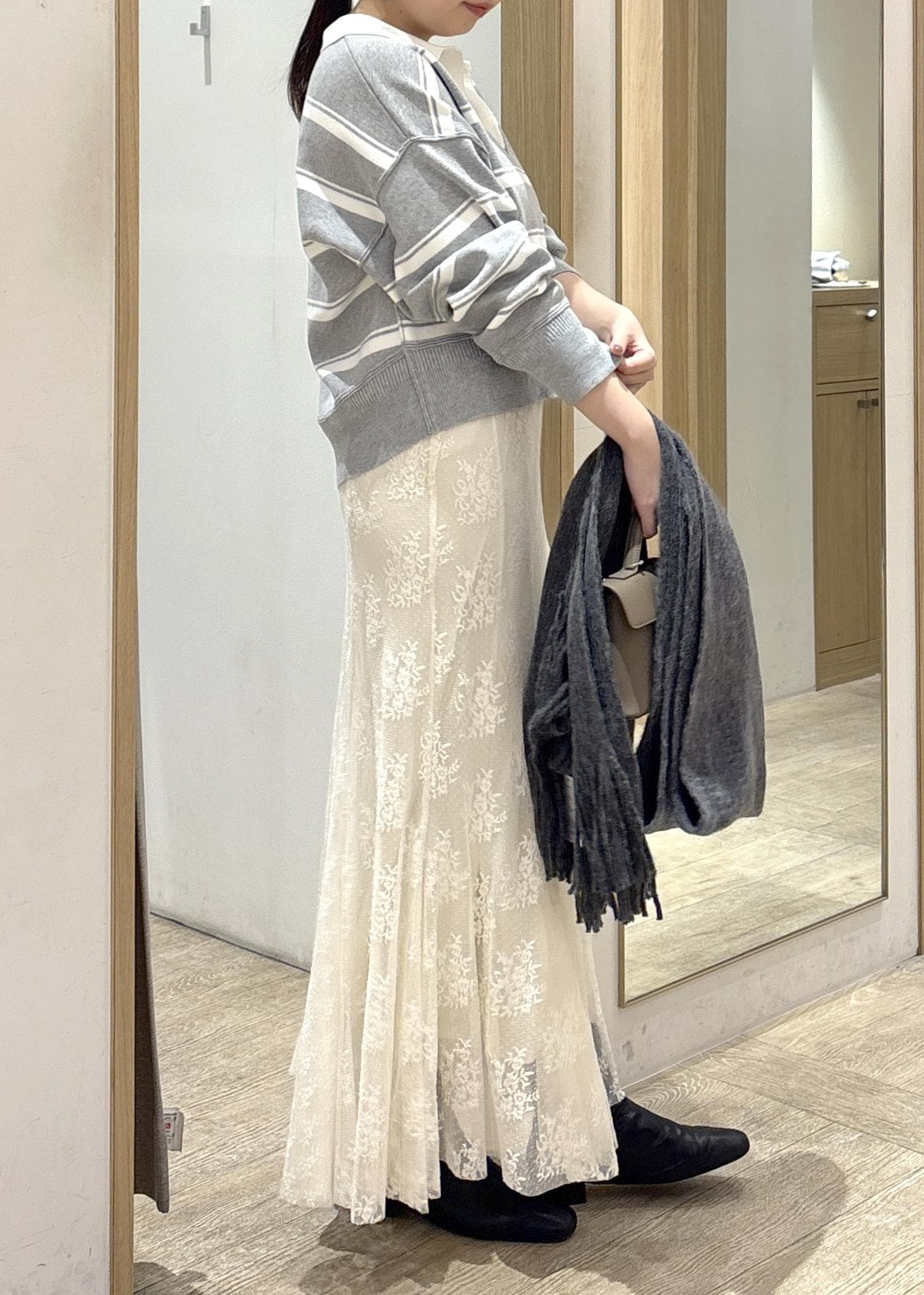 身幅に余計な広がりがなく、骨ストさんの上半身ラインをきれいに見せてくれるのが魅力です。