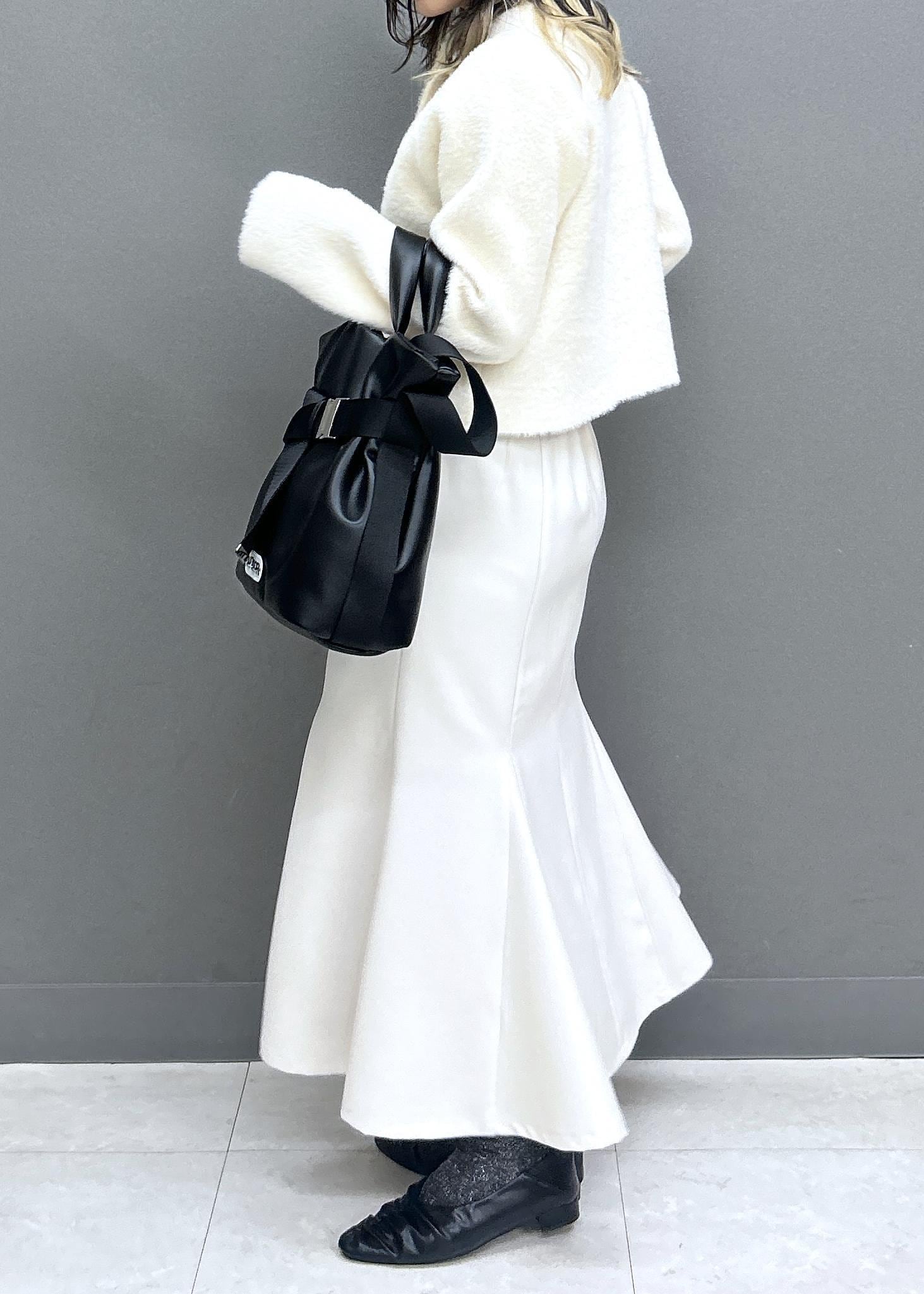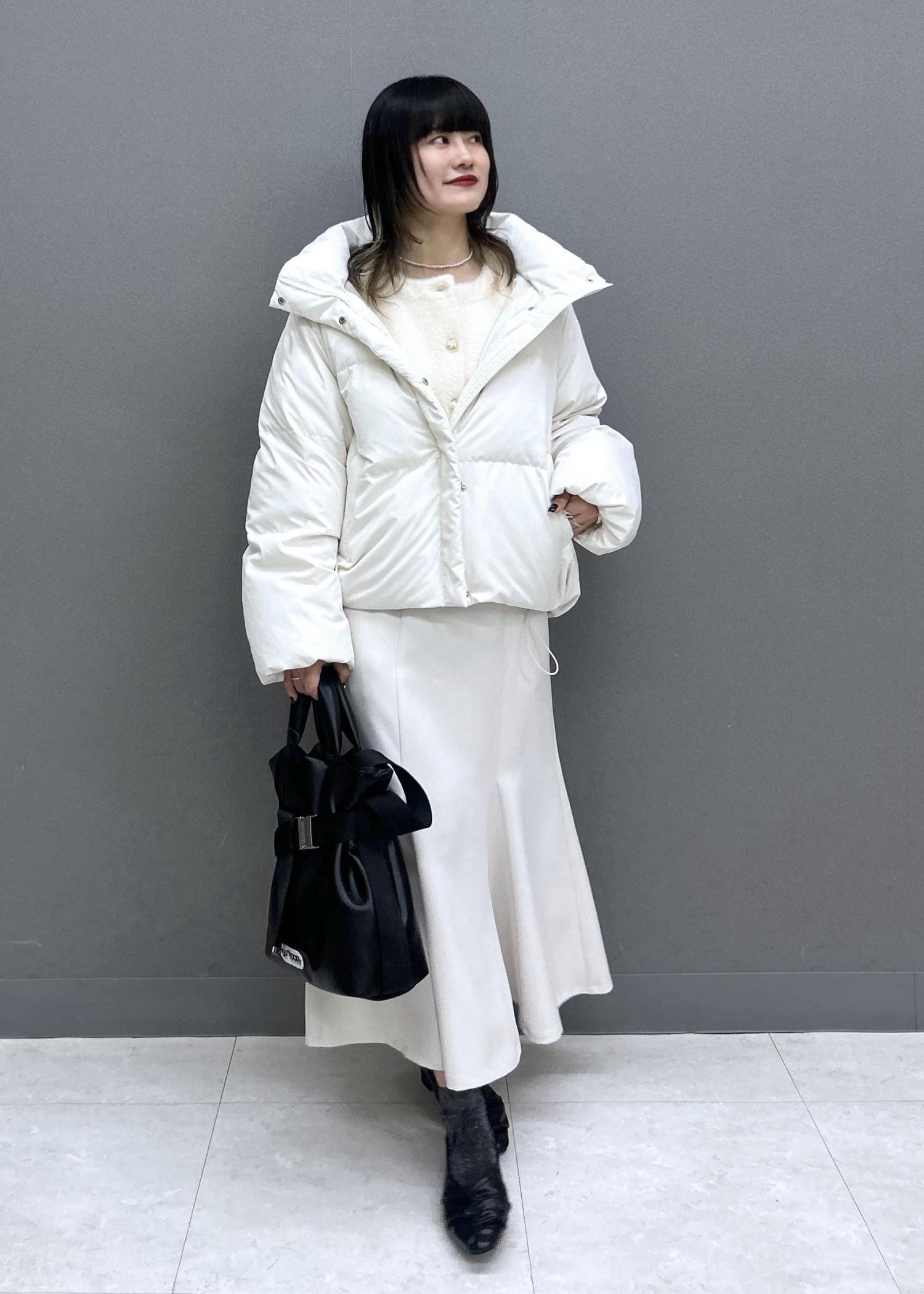 上下ホワイトで甘めなスタイリングに、ブラックの小物を合わせました◎