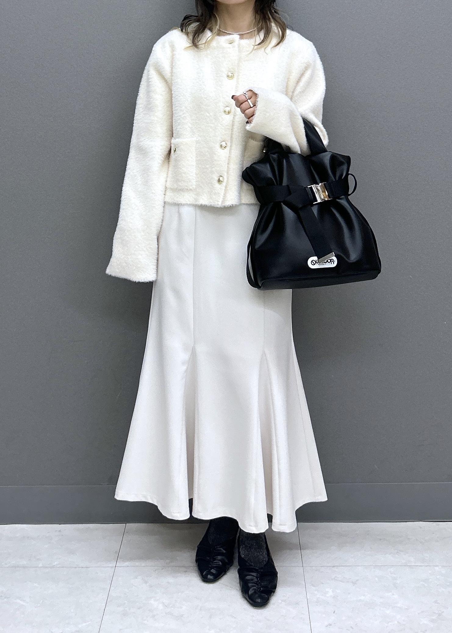 OUTDOOR別注の合皮バッグは、カジュアルなスタイリングにはもちろん、甘めなスタイリングのワンポイントに取り入れるのもメリハリのあるコーデになってオススメです♡