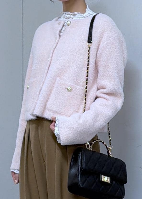 2BUY10%OFFVIS接結ミニフェザーニットジャケットカーディガン/一部WEB限定カラーピンク系 / F¥6,919レビュー思わず触りたくなってしまうようなカーディガンになっています!167cmの身長で丈は少し短く感じたのですが、中にブラウスなど入れていただければ気にならないくらいです◎