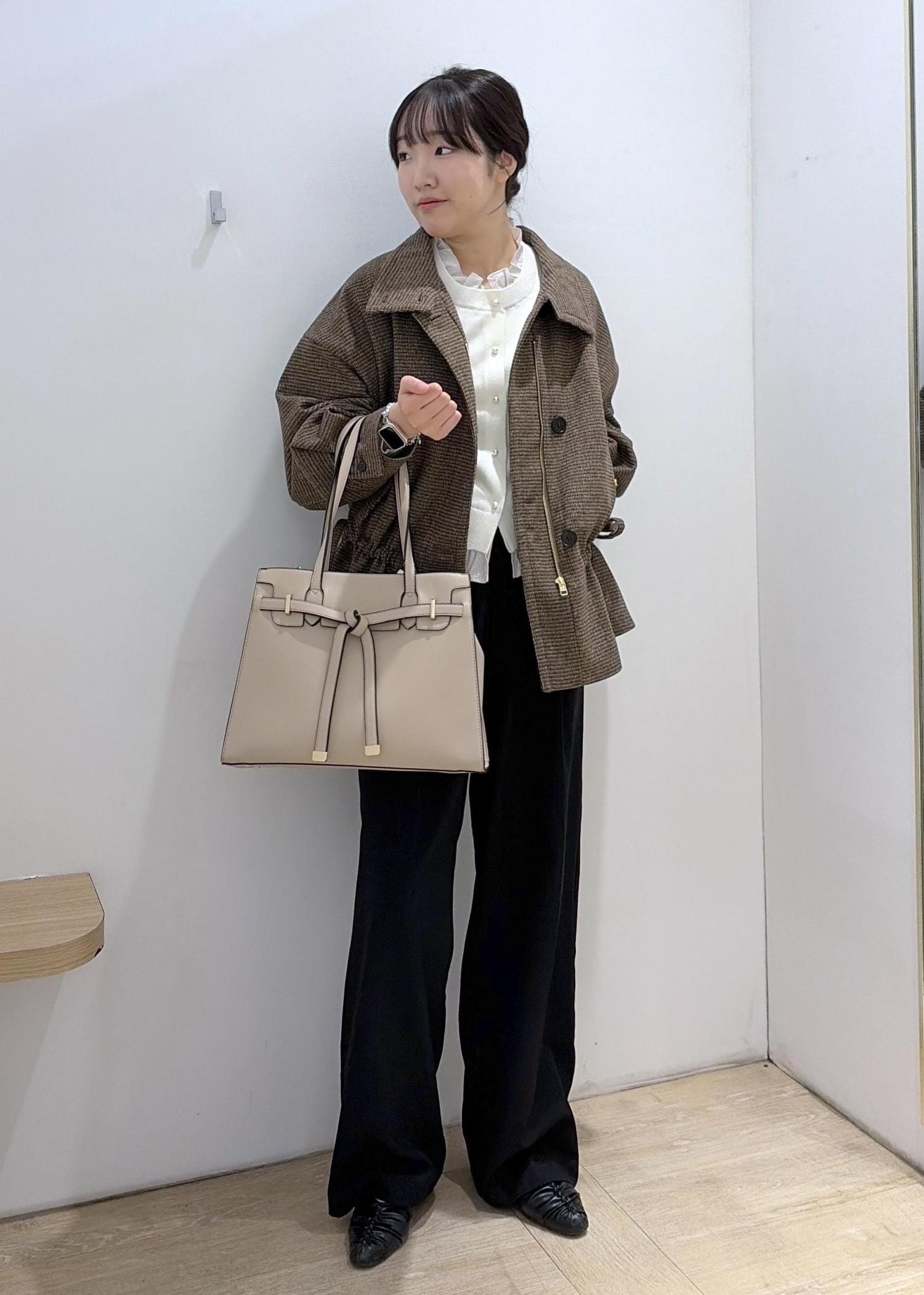 お仕事やきちんと感を出したい時にはMサイズがぴったりで着やすいです!
