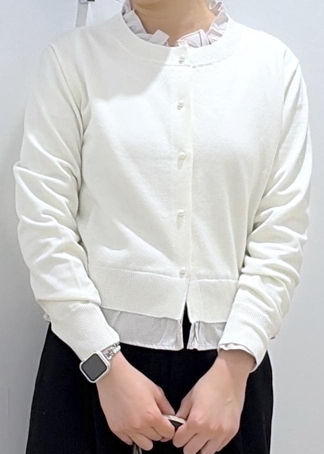 2BUY10%OFFVIS【美得】フリル襟ドッキングニットカーディガントップスオフホワイト / F¥5,929レビュー首元と裾のフリルが女性らしくて可愛いトップスです!