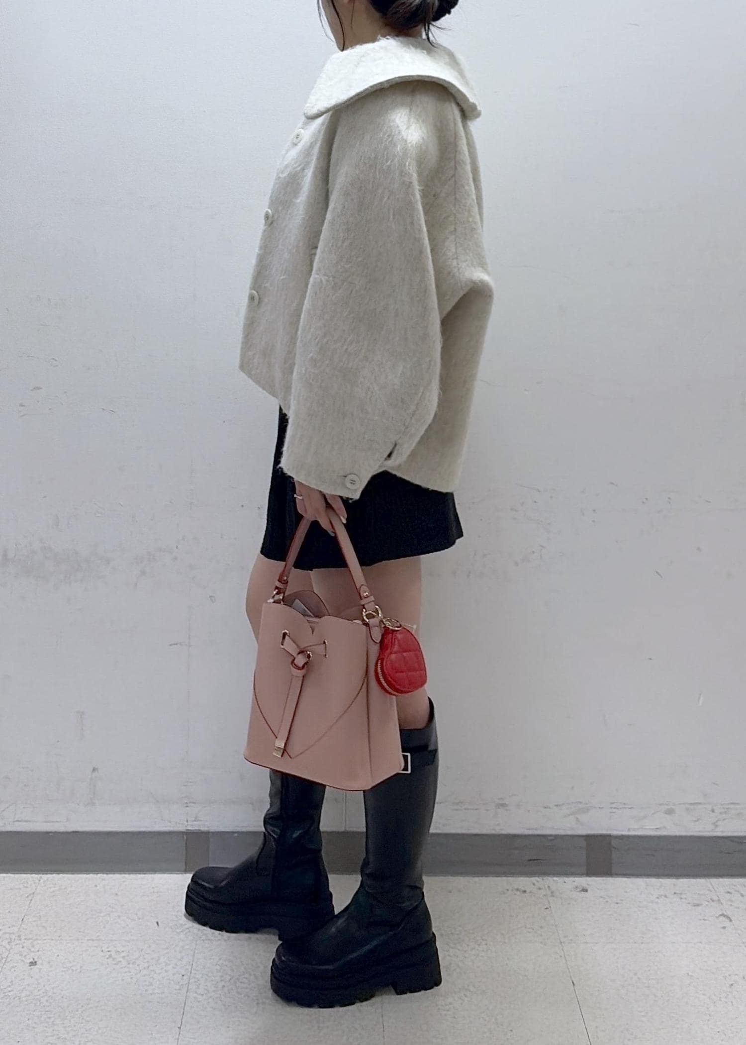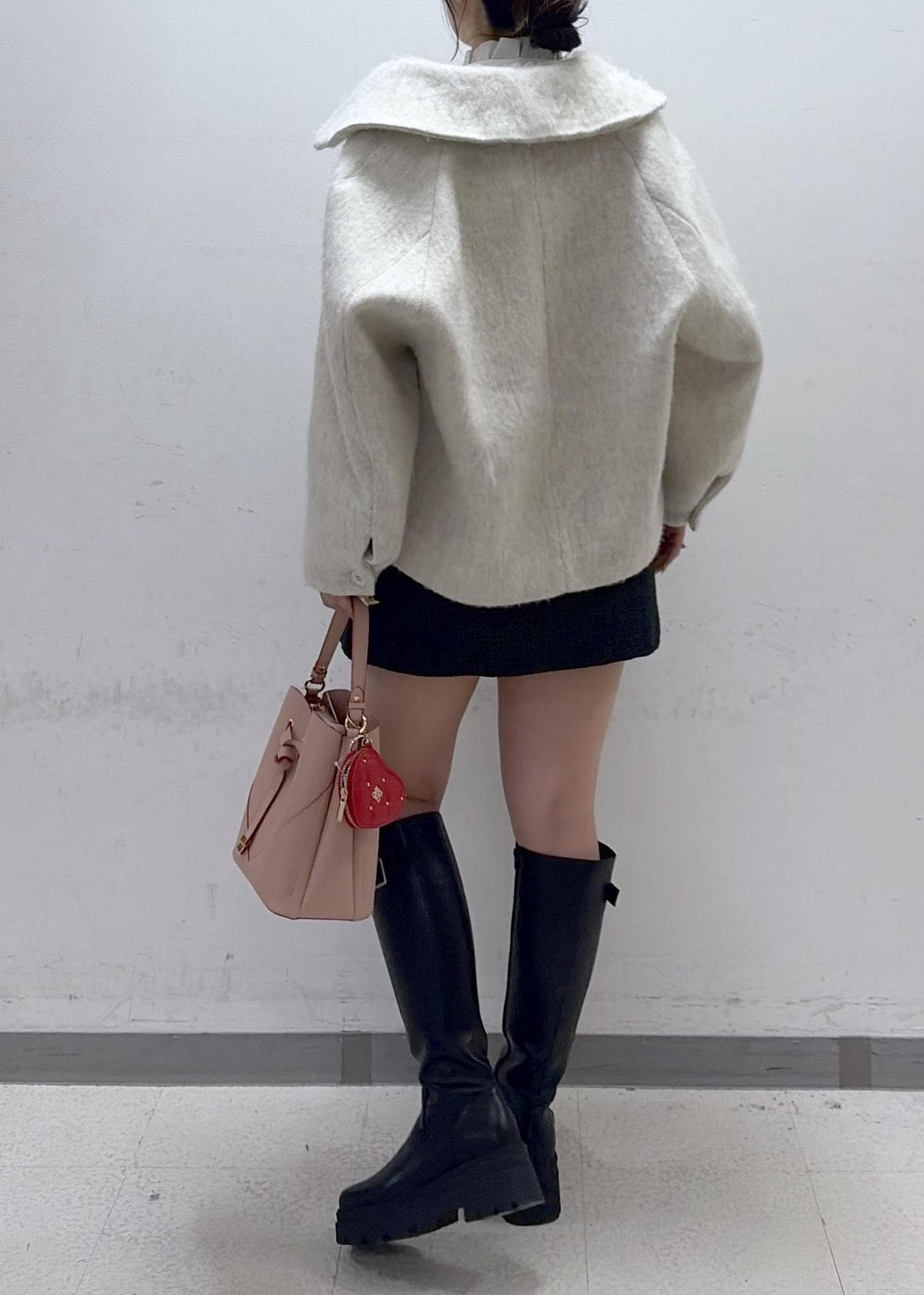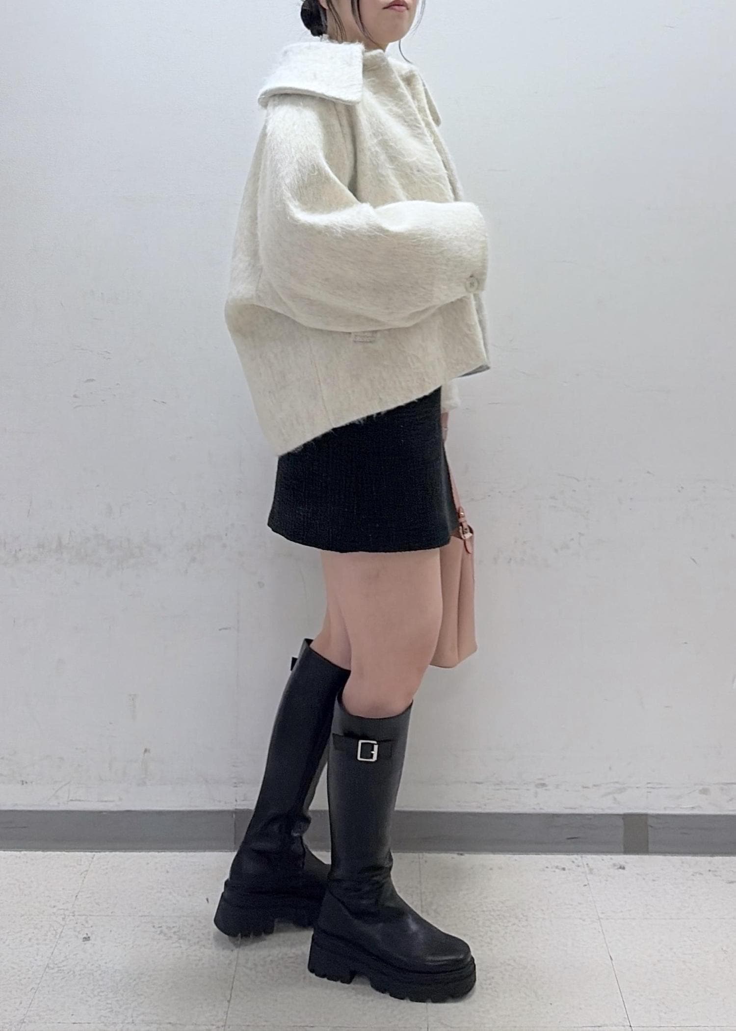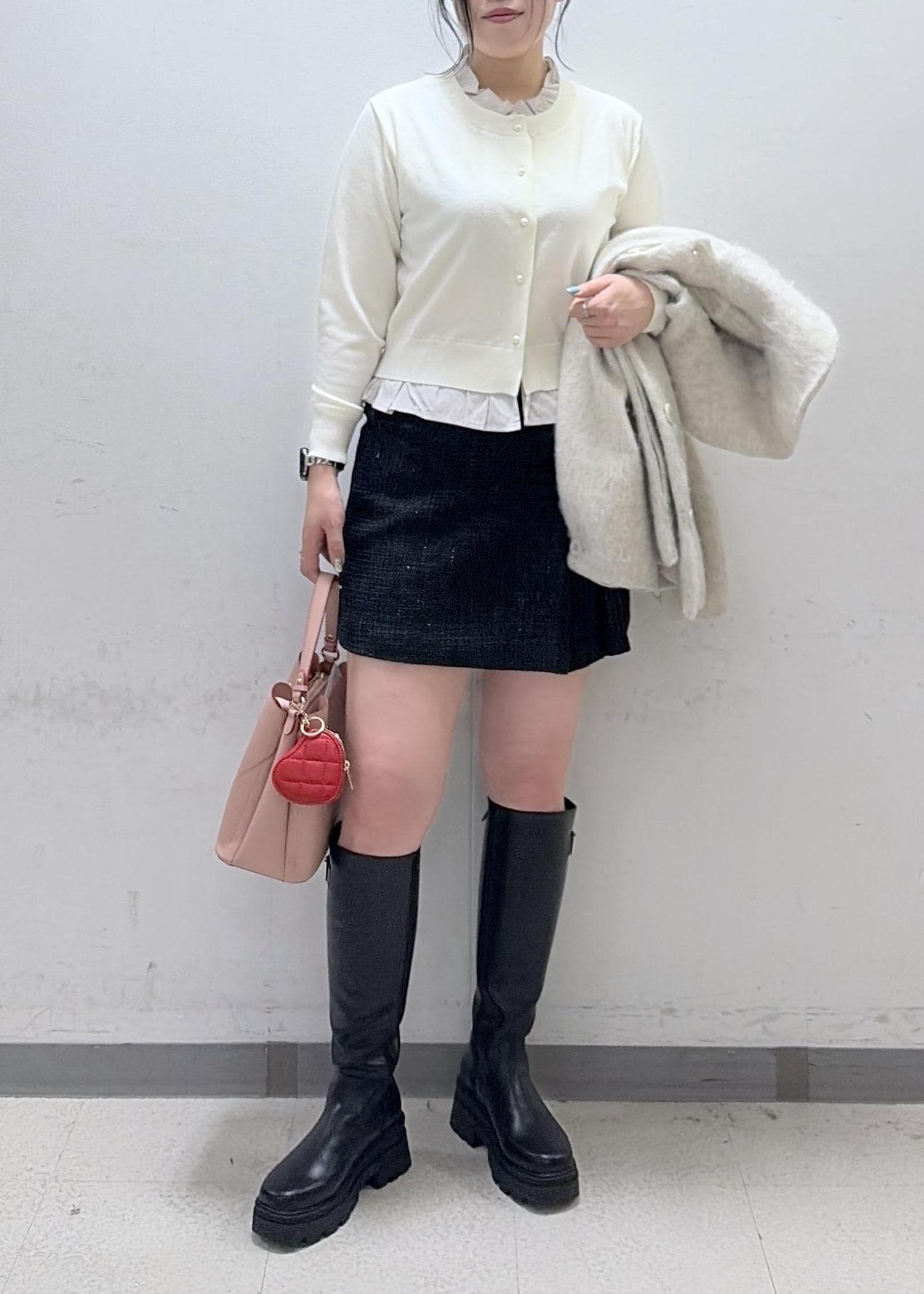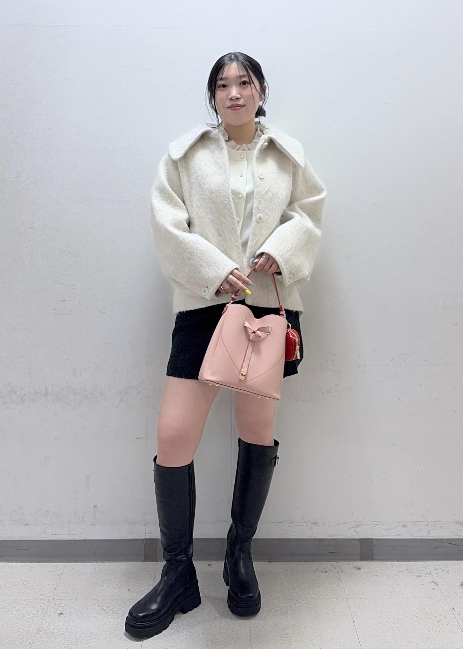 足の露出感が出過ぎないようにロングブーツを合わせました!