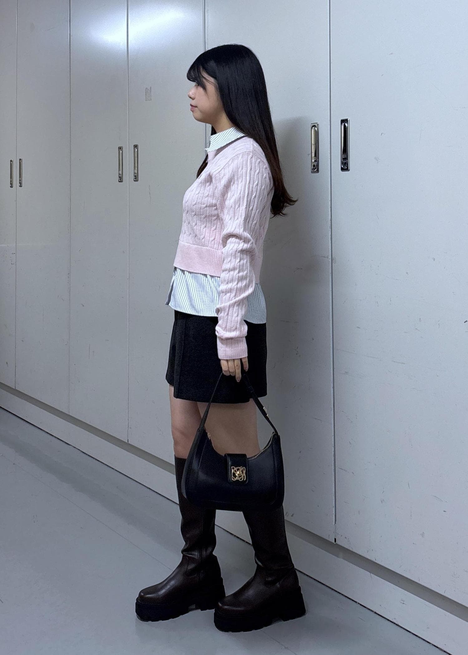 トップスをピンクにしたので、甘くなりすぎないように意識しました!