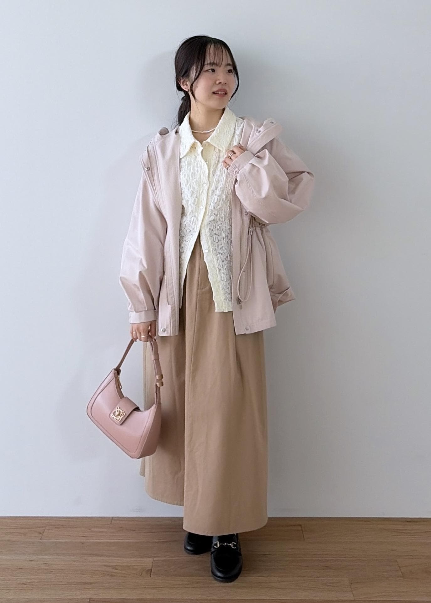 パール粒は大きすぎず程よいサイズ感なので、キレイめにもカジュアルスタイルにも合わせやすいです!