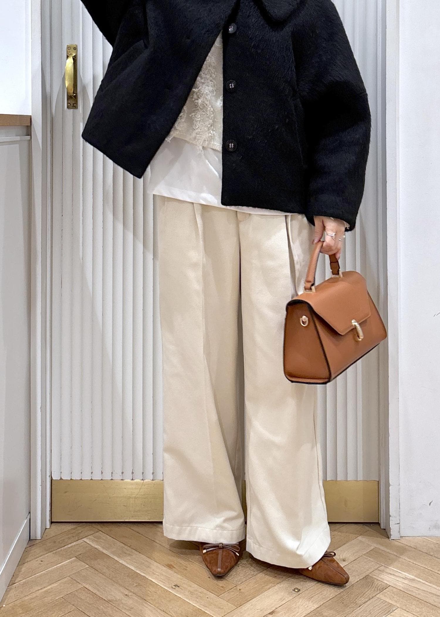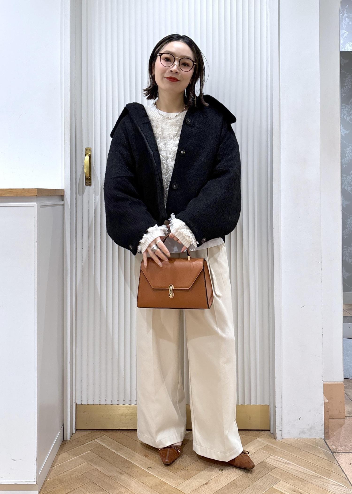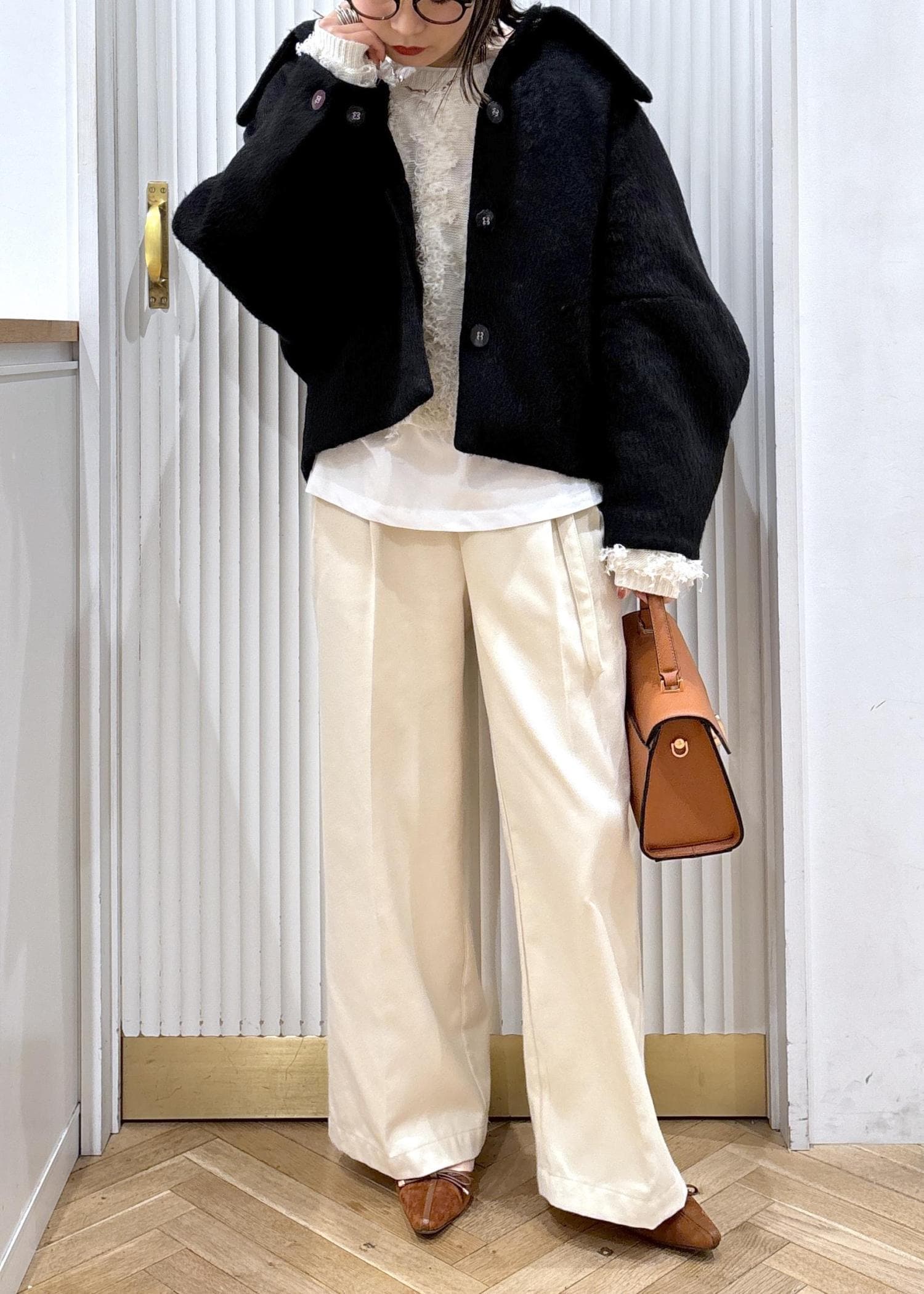 ワイドパンツと合わせて大人っぽカジュアルもたまにはいいですよね♡