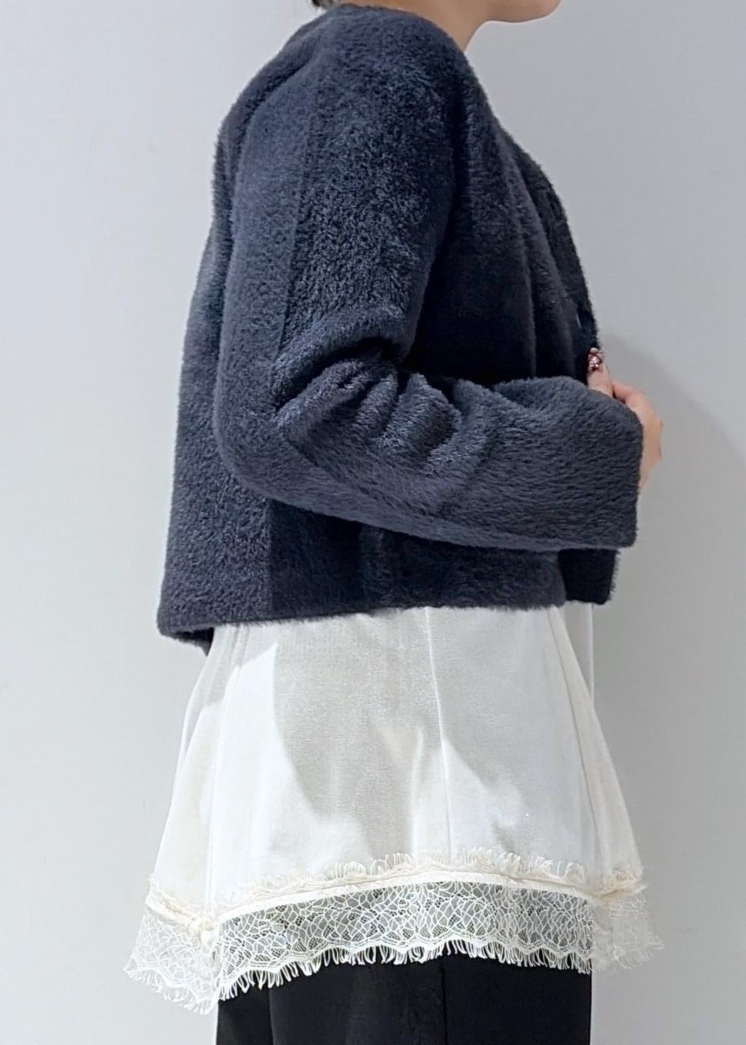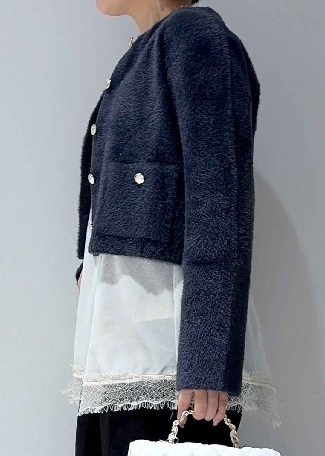VIS接結ミニフェザーニットジャケットカーディガン/一部WEB限定カラーネイビー / F¥6,919レビュー丈が短すぎず長すぎないので