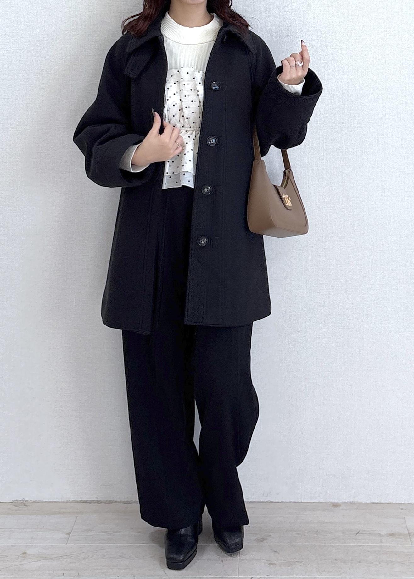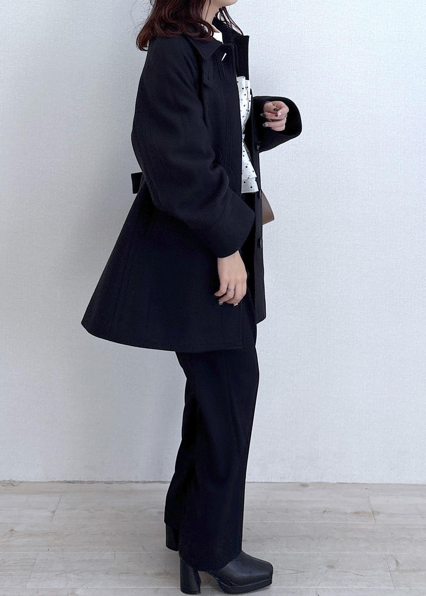 程よくゆとりのあるシルエットで、厚手のニットやワンピースの上からも羽織りやすい一着です。