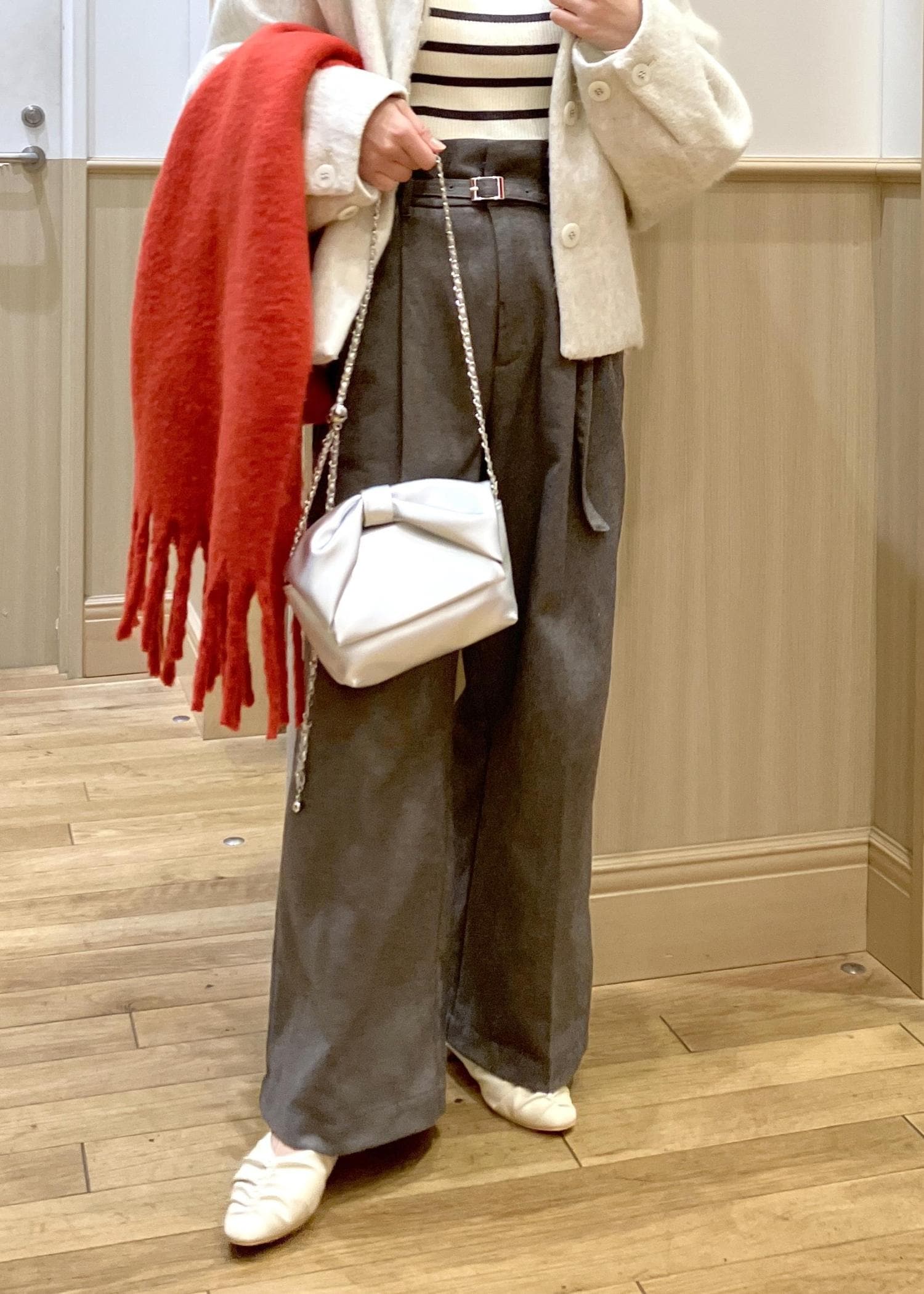 VIS起毛ウールライク版ベルトディテールタックワイドパンツグレー / S¥5,271レビューサイズ感について