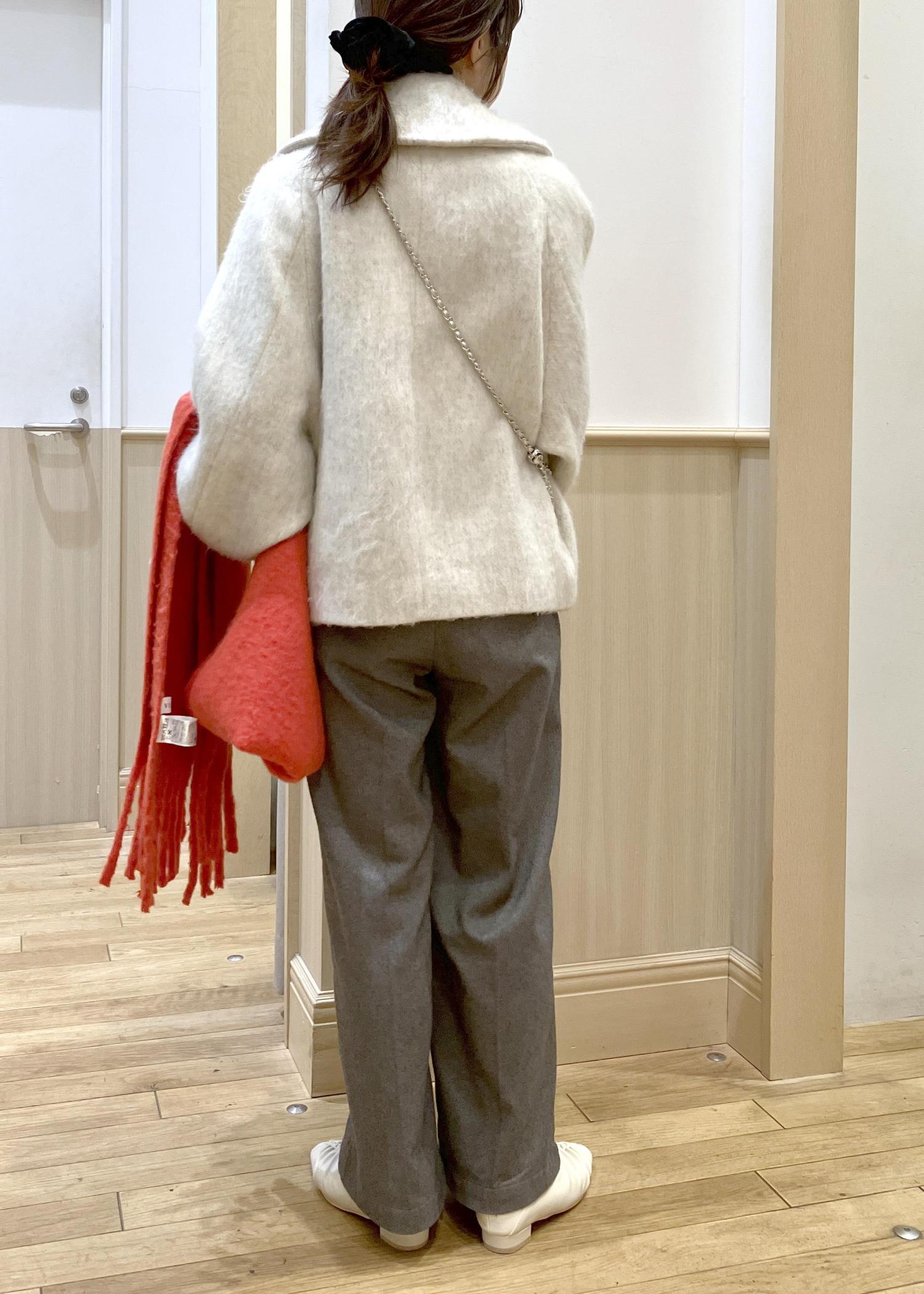 アームが広めでゆったりシルエットなので、インナーにモコモコニットも、スウェットも着込めます!