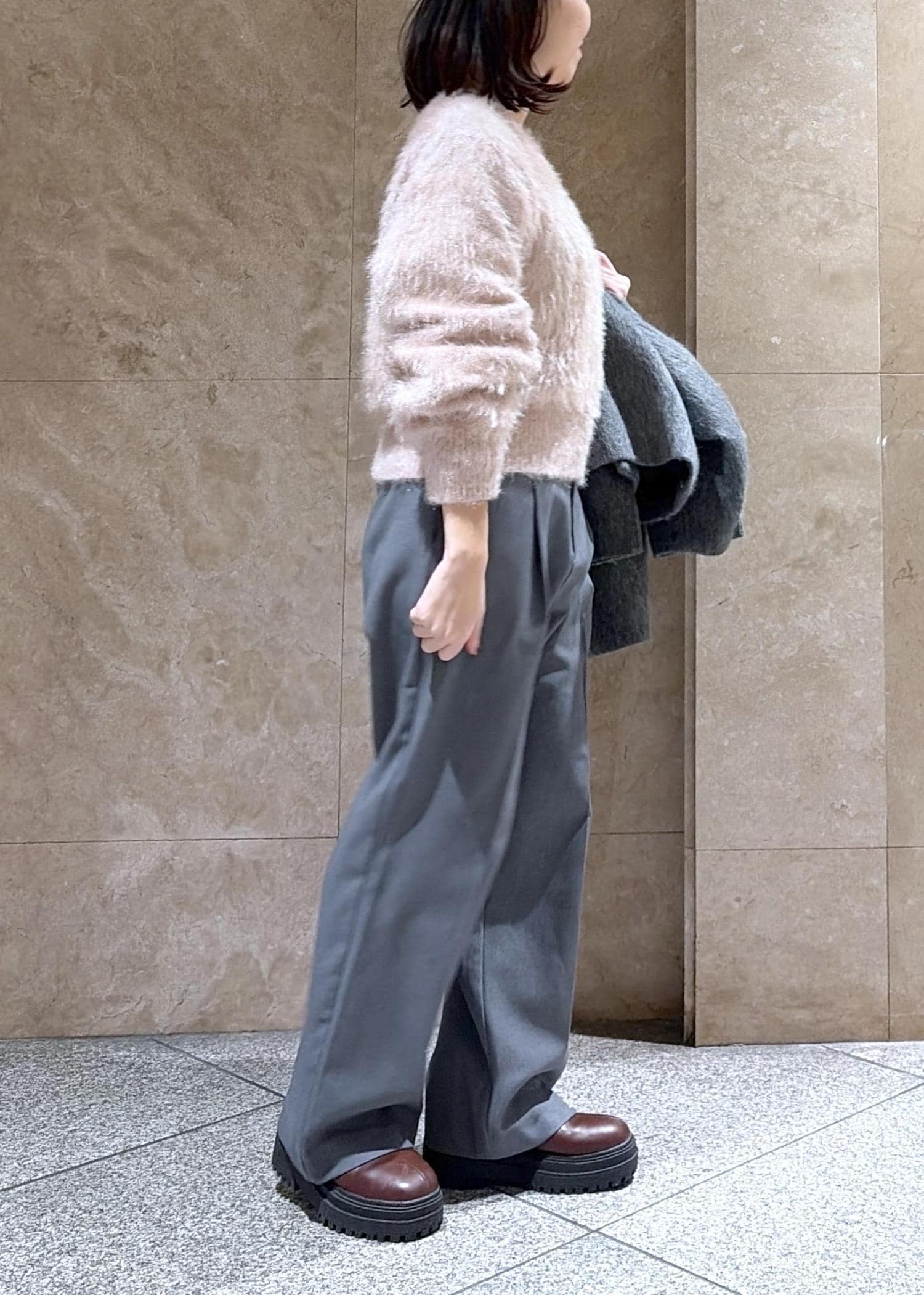 VIS【期間限定価格】美easyウーリッシュワンタックワイドパンツ【セットアップ対応/洗える】グレー / S¥5,930レビュー身長150cmで、Sサイズを着用しました!ボタンを1つ絞って着用し、かかとが隠れるぐらいの丈感でした!地面に付かないので、スニーカーやペタンコ靴でも大丈夫です◎
